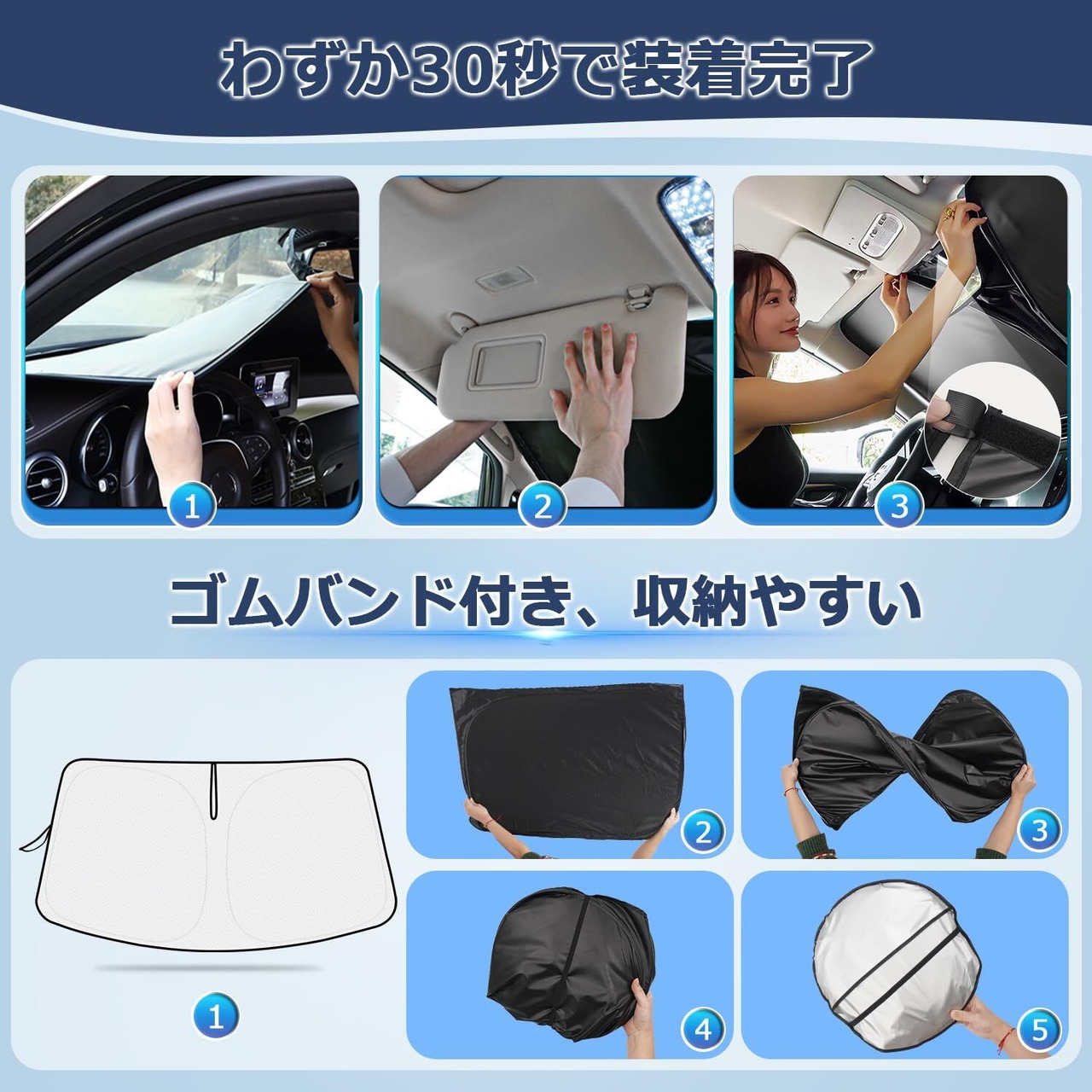 3.【UVカット・断熱・内装劣化防止】:長時間日に当たる後、車の中が蒸し暑くなり、この製品は太陽光を通さない高密度の生地を使用しており、 紫外線を99.9%カットし、強い日光を反射して車内の温度を下げる。長時間の日焼けで内装劣化が防ぐことができる。