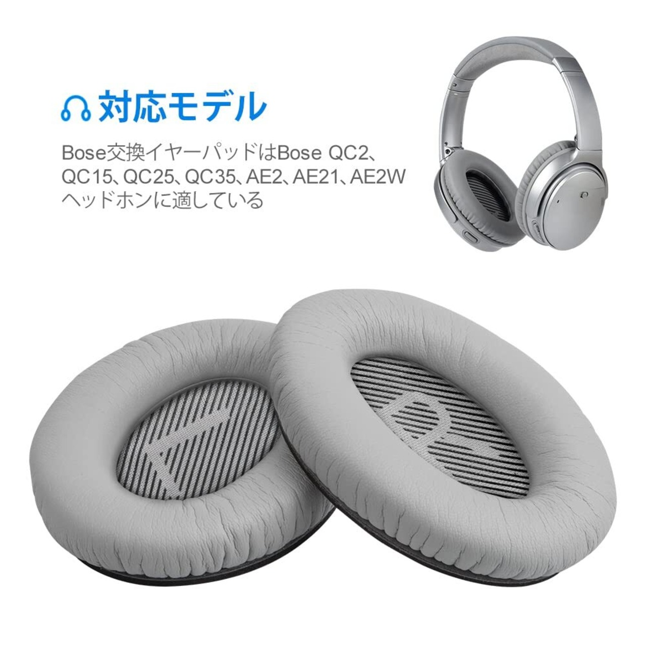 Link Dream イヤーパッド イヤークッション 交換用 Bose Quiet Comfort 35ヘッドフォンに適用 ヘッドホンパッド 遮音 ソフトレザー 高密度フォームBose QC 35/25/15 QC2/Ae2/Ae2i/Ae2W/Sound Link/Sound Trueに対応 (グレー)