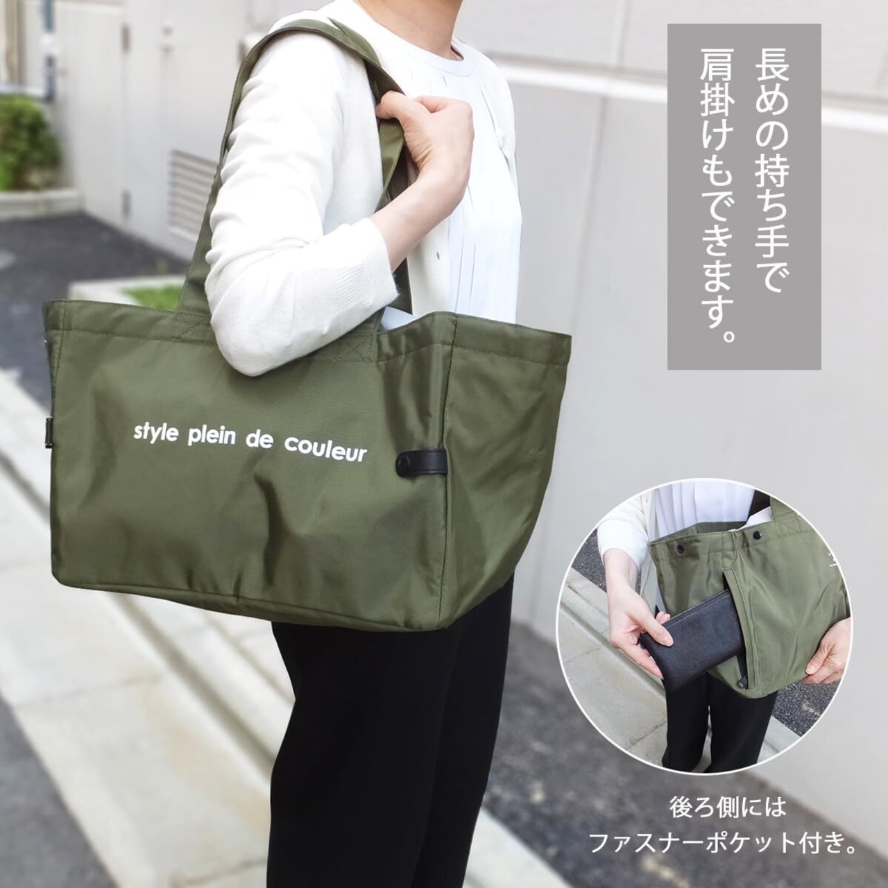 サイズ=約 W:39cm×D:24cm×H:27cm、持ち手長さ=約 65cm(平置きサイズ)、素材=ポリエステル100%、重さ=約 360g~400g(素材繊維の厚み等により若干異なります)