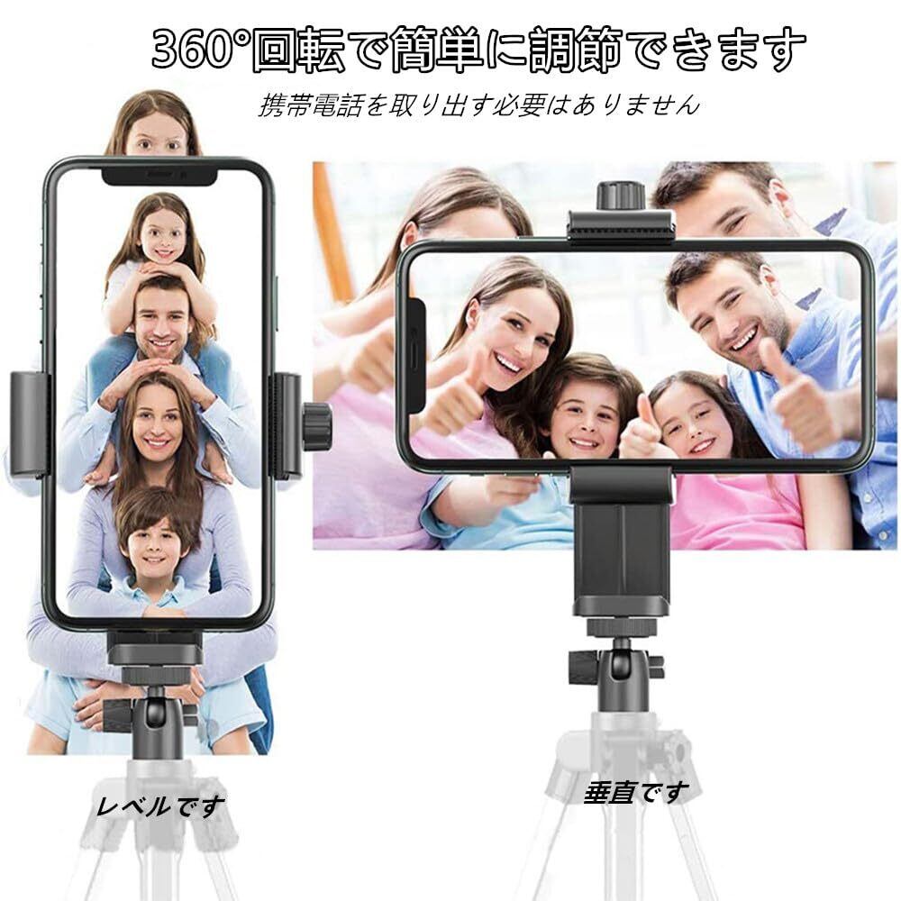 【1/4ネジ穴が付いて】三脚、一脚、スタビライザー、またはユニバーサル1/4インチネジを備えたその他の撮影装置に取り付けることができます,360°回転 角度調整 三脚 一脚 用 スマホホルダー,ミニ三脚などと組み合わせる事でスマートフォンでも安定した撮影が可能です。自撮り棒と組み合わせてセルフ撮影にも使用できます,スマホホルダ一三脚用 三脚 アタッチメント。