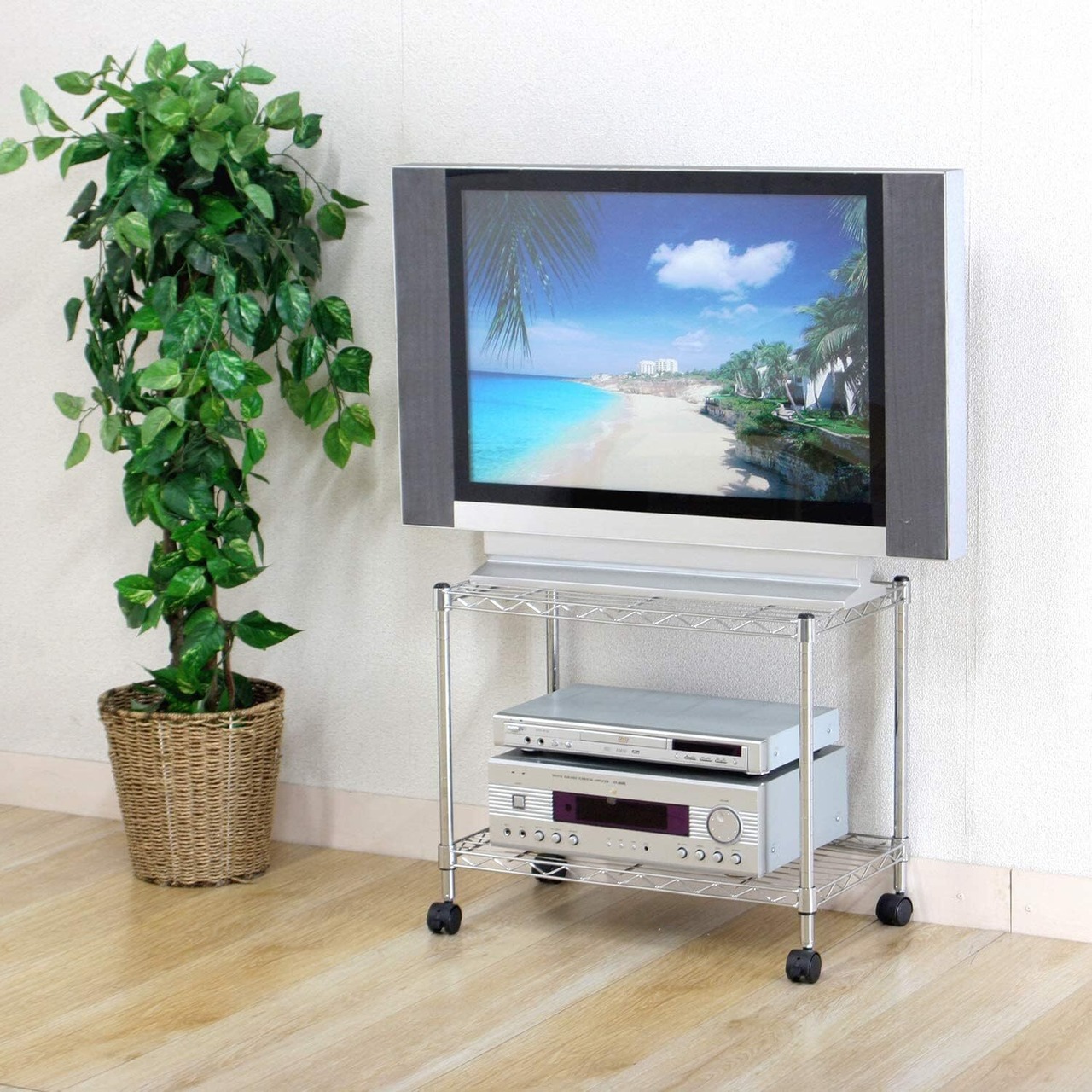 不二貿易(Fujiboeki) テレビ台 ローボード 2段 幅60×奥行35×高さ51m シルバー キャスター付き メタルラック 組立商品 91783