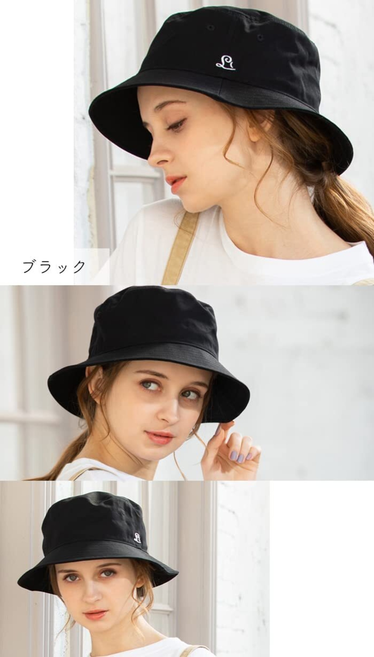 [Loo&c] [ルーアンドシー] 帽子 レディース 綿100%バケットハット 大きいサイズ ハット uvカット 接触冷感 完全遮光 紫外線対策 オールシーズン サイズ調整可能 (ブラック, XL(61-63cm))
