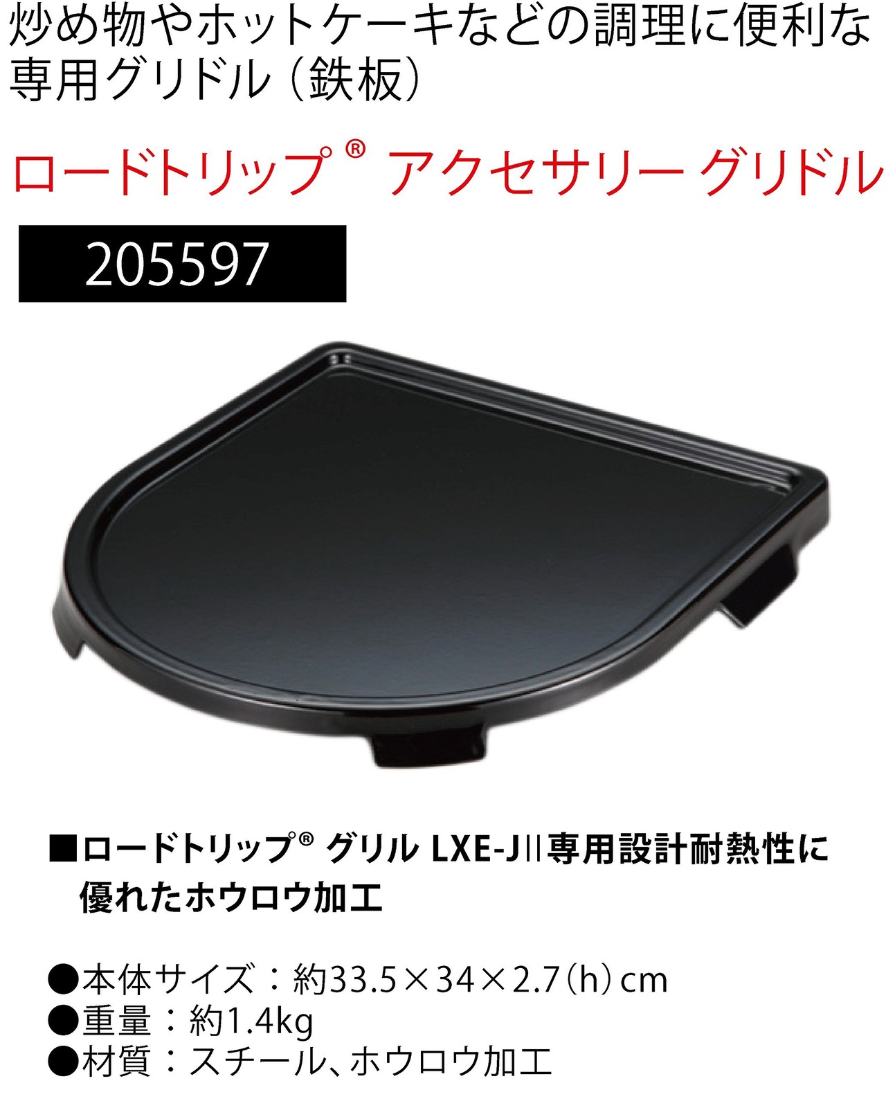 炒め物やホットケーキなどの調理に便利なロードトリップグリルLXE-J専用グリドル(鉄板)。