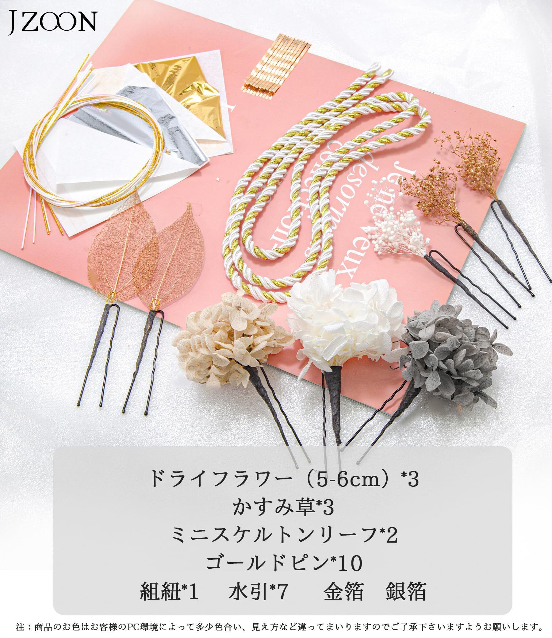 [JZOON] 髪飾り 成人式 ドライフラワー 水引 金箔 銀箔 カスミソウ 組紐 人気 ロープ ヘアアクセサリー 前撮り 振袖 卒業式 結婚式 和装 袴 着物 浴衣 ブライダル 花嫁 ヘッドパーツ ゴールドピン ゴールド葉っぱ Y1604