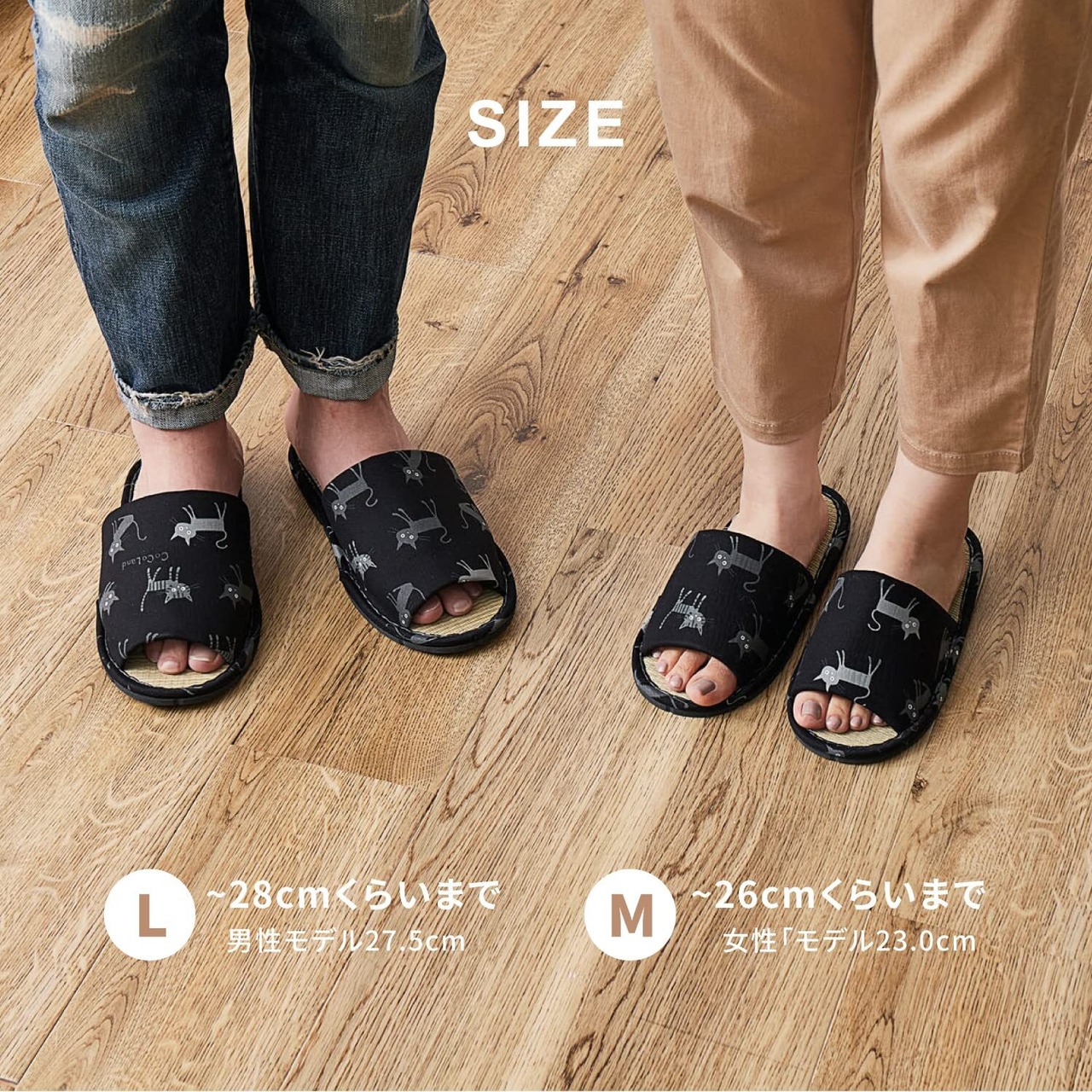 かわいいランダムな猫柄の国産い草スリッパです。