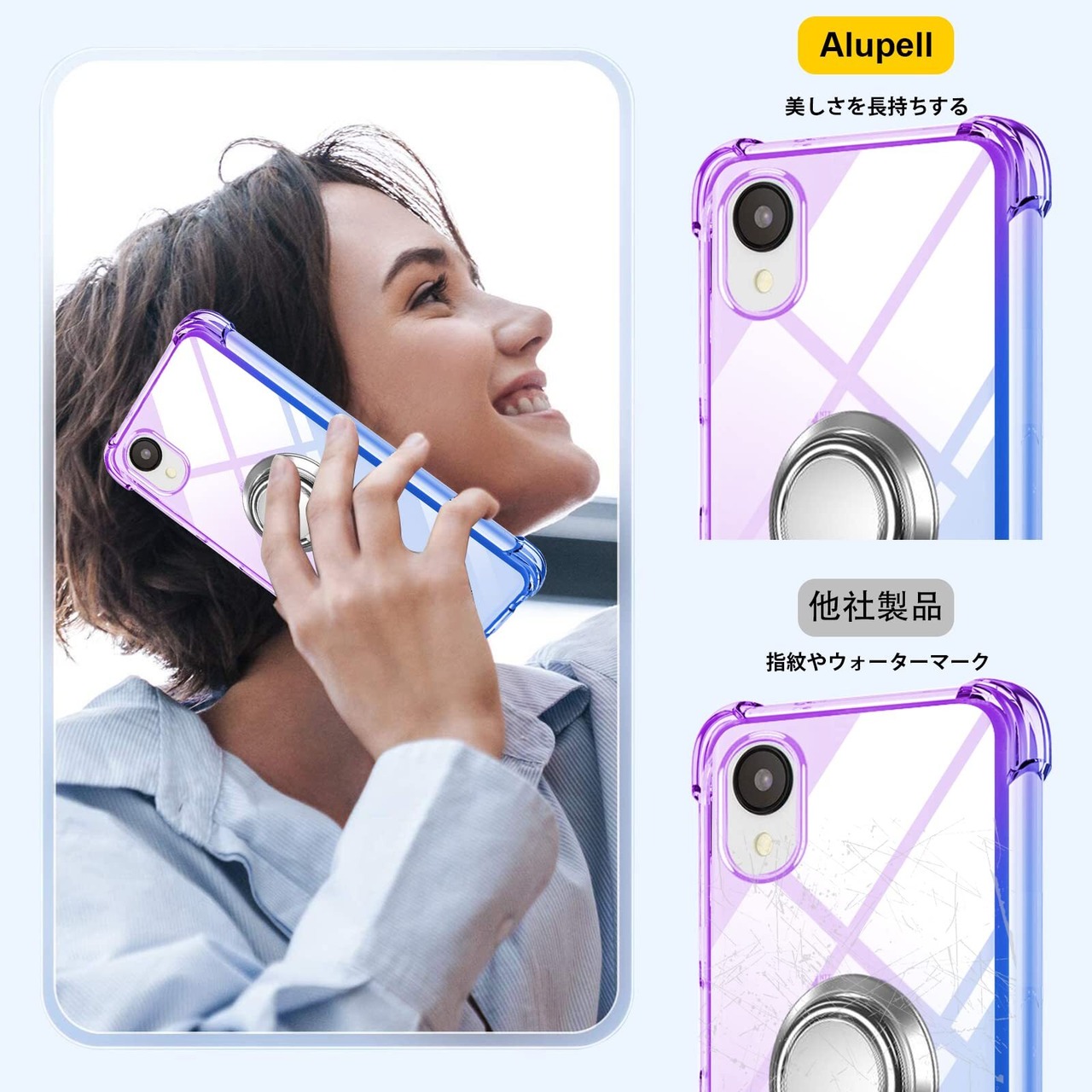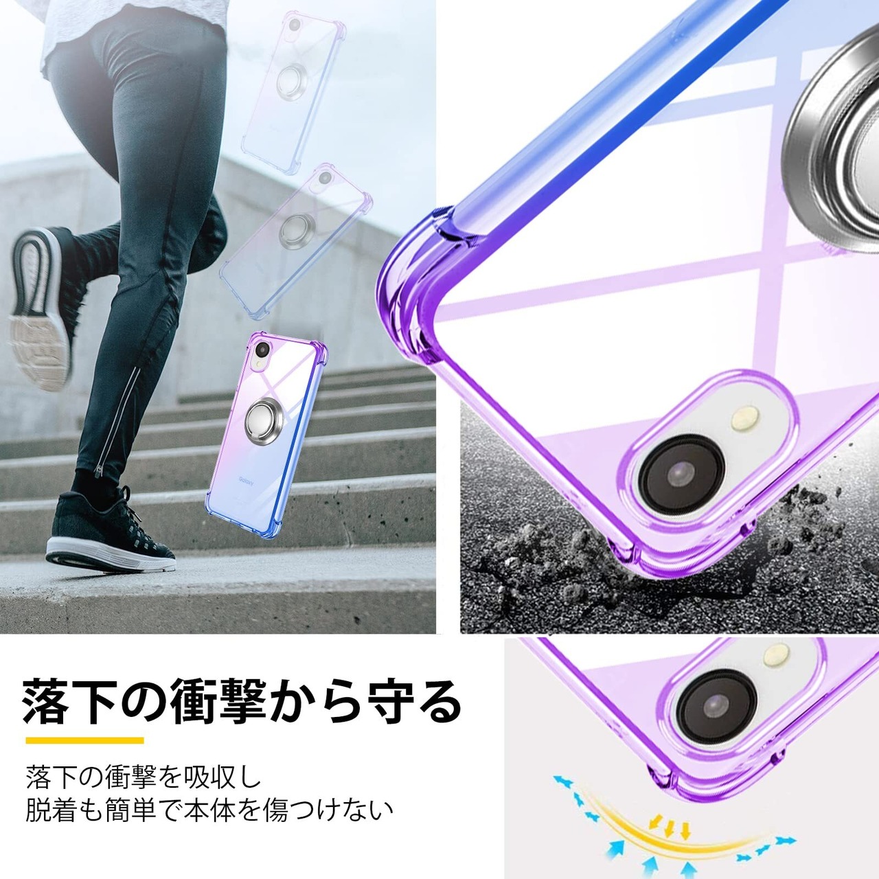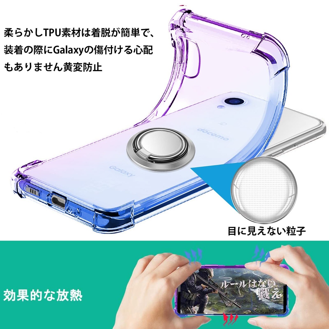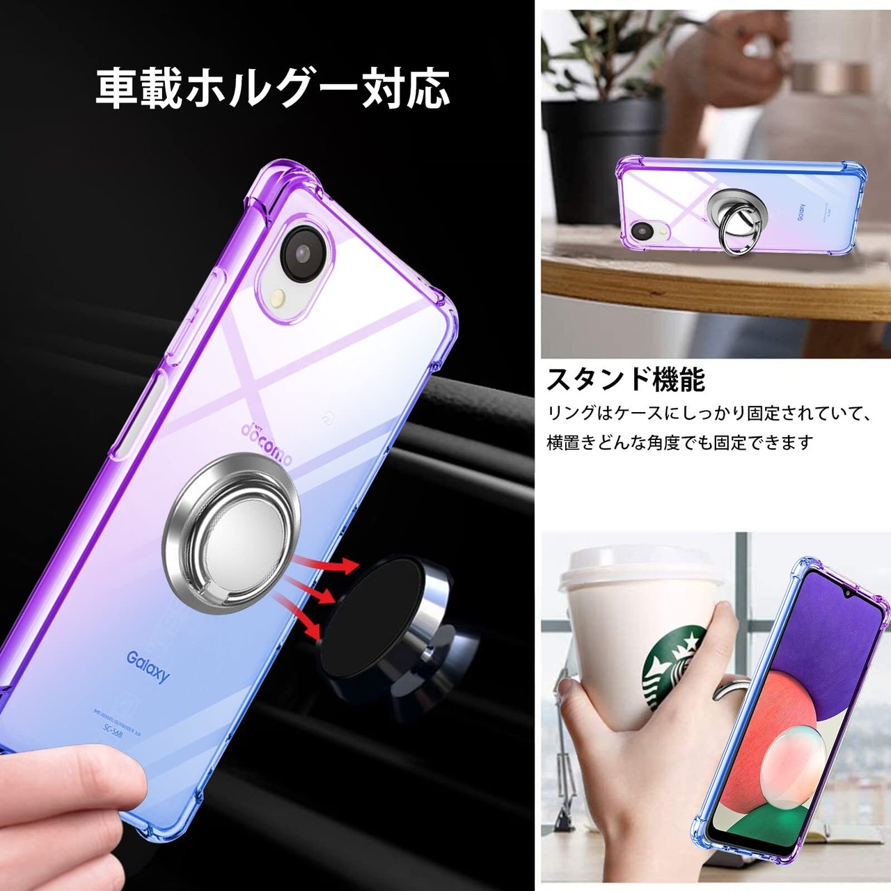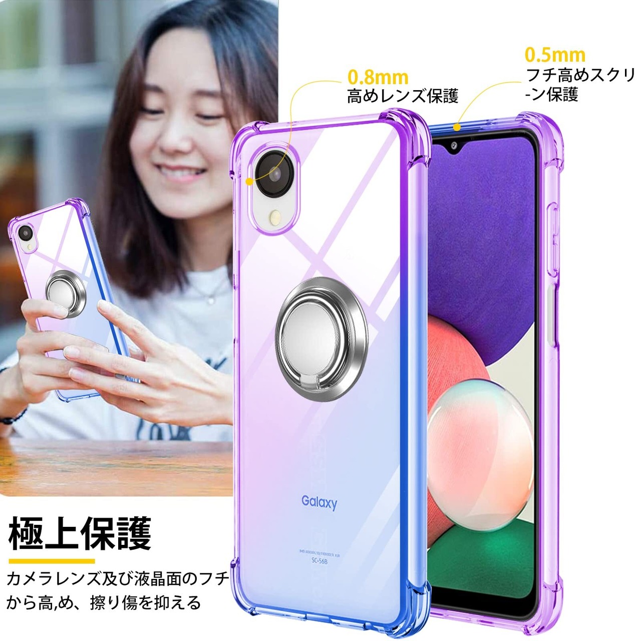 Galaxy A23 5G ケース リング TPU 薄型 軽量シリコン SC-56C カバー グラデーション色 ケース 耐衝撃 指紋防止 車載ホルダー対応 防塵 一体型 人気 携帯カバー(パープルブルー)