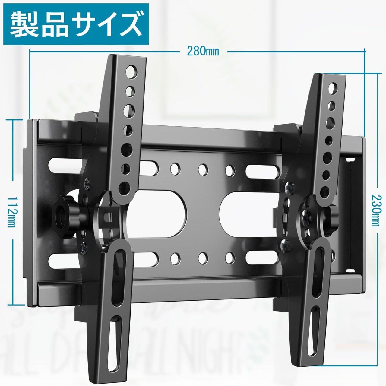 ASMXQY テレビ壁掛け金具 14-42インチ対応 小型LCD LED 液晶テレビモニター用 ティルト±15度 上下角度調節可能 VESA200x200mm 耐荷重25kg テレビかべかけ金具 (14~42インチ)