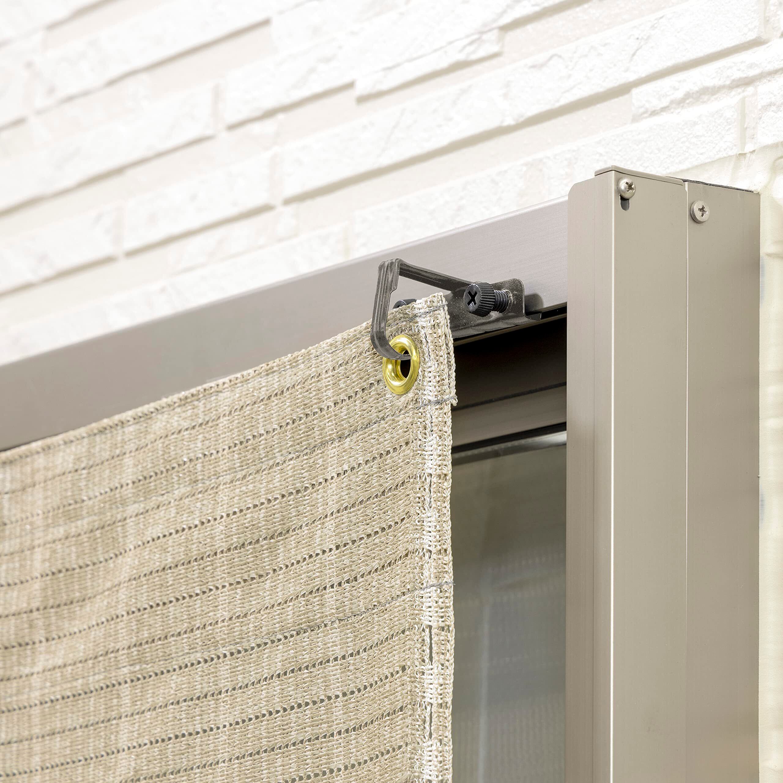 すだれやシェードの取り付け金具(窓サッシ用)。サッシ枠に差し込んでネジで固定するだけ。樹脂ネジだからサッシにキズをつけにくい。ステンレスだから丈夫で長持ち。