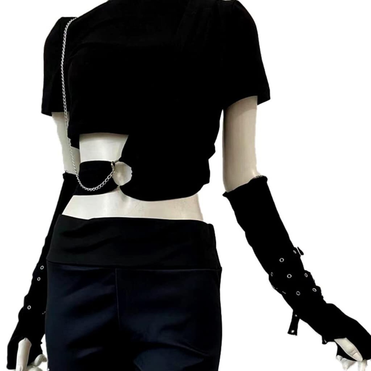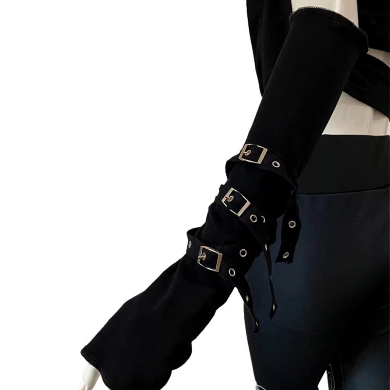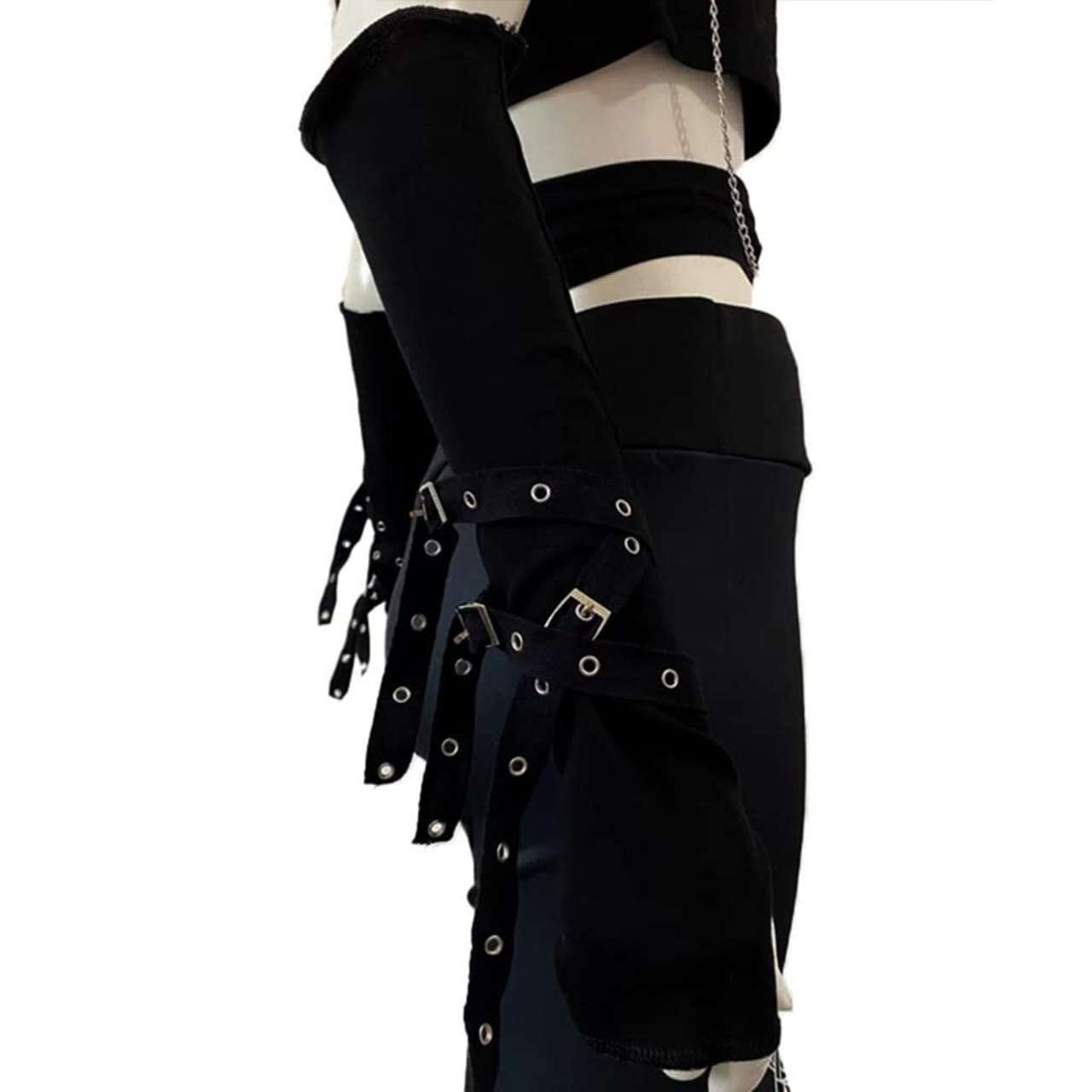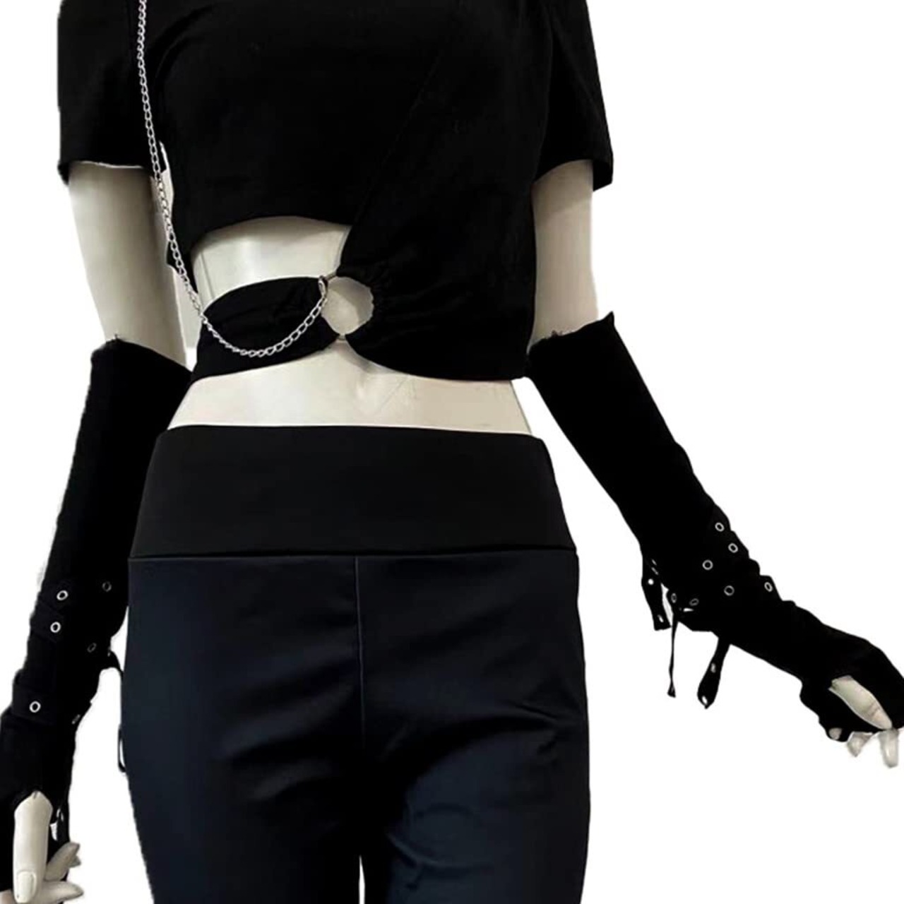 shunxinersty パンクゴシックハンドグローブ 伸縮性のある長い指なし袖 伸縮性のある日焼け防止アームスリーブ 肘の長さの袖 uv保護アームカバー ブラック フリーサイズ レディース