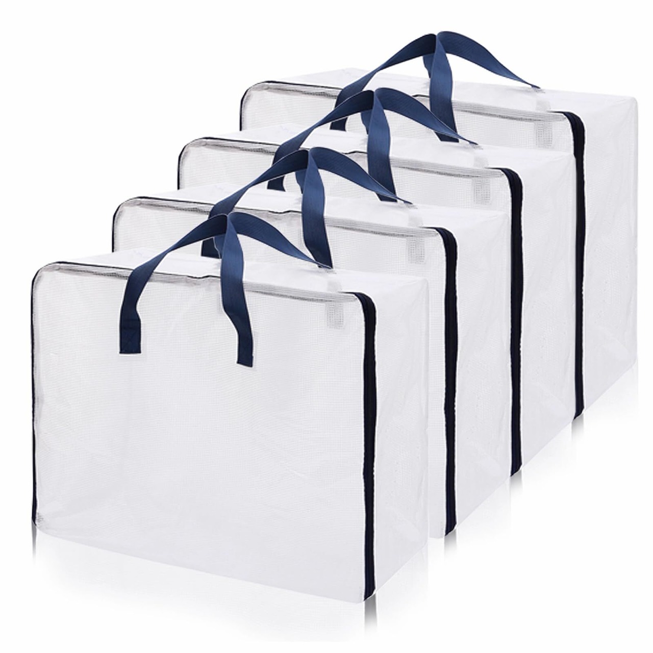 YOSTORYA 布団収納袋 ふとん 収納袋 大容量 (L-4個セット)布団袋 引っ越し ぬいぐるみ 衣類 洋服 収納ボックス 収納ケース ダークブルー 持ち手とファスナー付き 强荷重:50KG 透明 押入れ収納袋 58x38x22cm