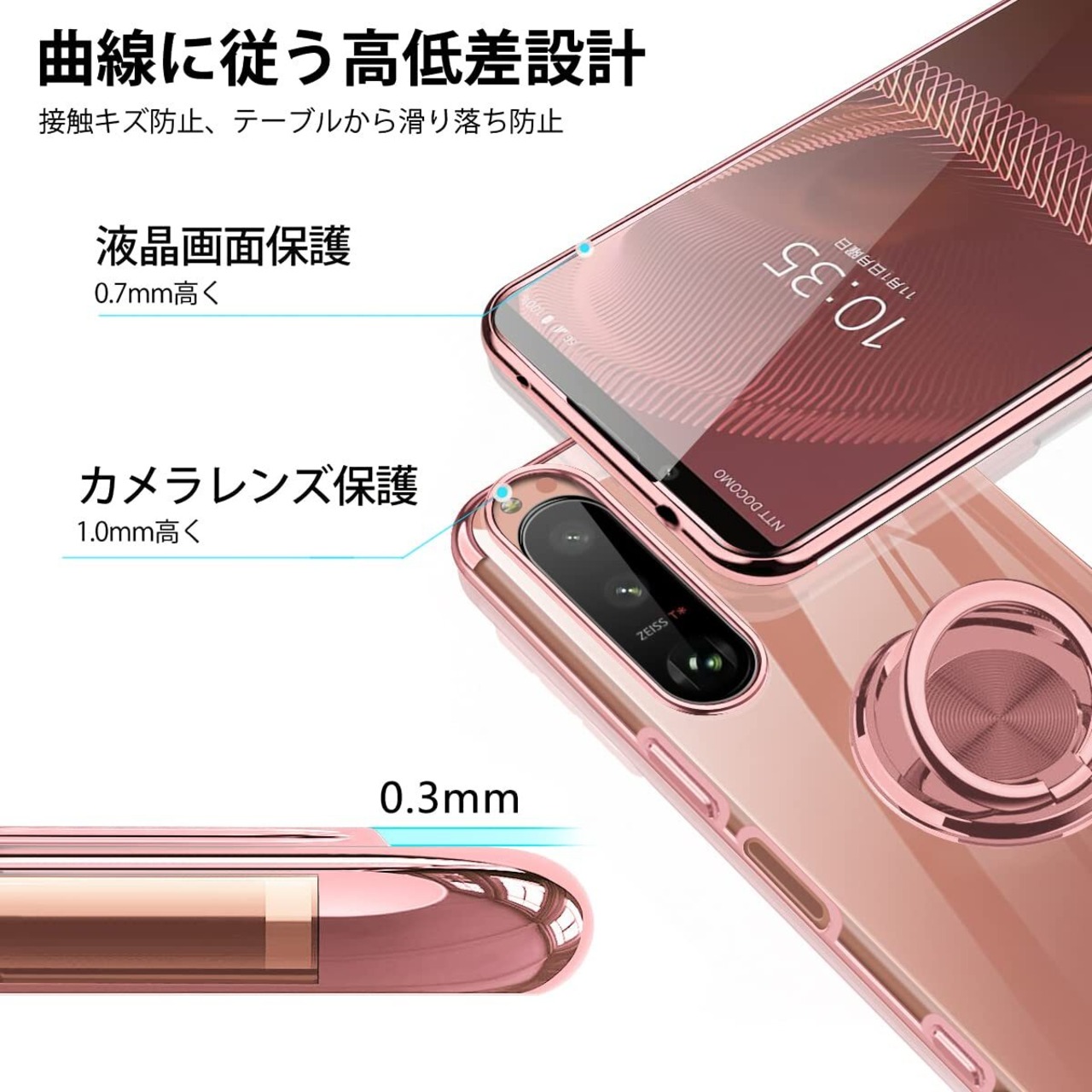 Xperia 5 III ケース SO-53B カバー リング クリア TPU 耐衝撃 透明 メッキ加工 SOG05 スマホケース 一体型 スタンド機能 車載ホルダー ストラップホール Sony エクスペリア5III ケース ローズゴールド