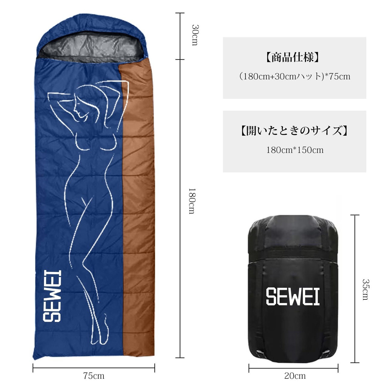 寝袋 シュラフ 【SEWEI 寝袋 シュラフ 封筒型 足元の防風カバー 付き】 軽量 保温 防水超暖かい 冬用 コンパクト 簡単収納 登山 車中泊 防災用 アウトドア キャンプ 丸洗い可能 春夏秋冬の使用可能 収納袋付き(ネイビー+カーキ,1KG)