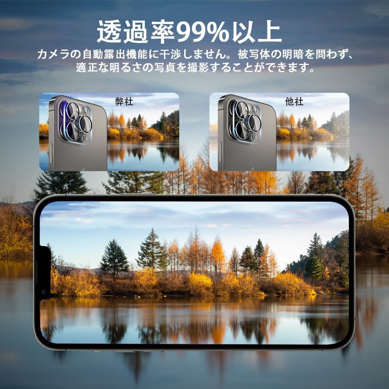【高透過率高タッチ感度】用 iPhone15Pro / iPhone15promax カメラフィルムは極薄0.26 mm、高透過率、鮮明な色彩を邪魔しない高い透過度があり,快適に利用できるカメラ保護フィルムです。