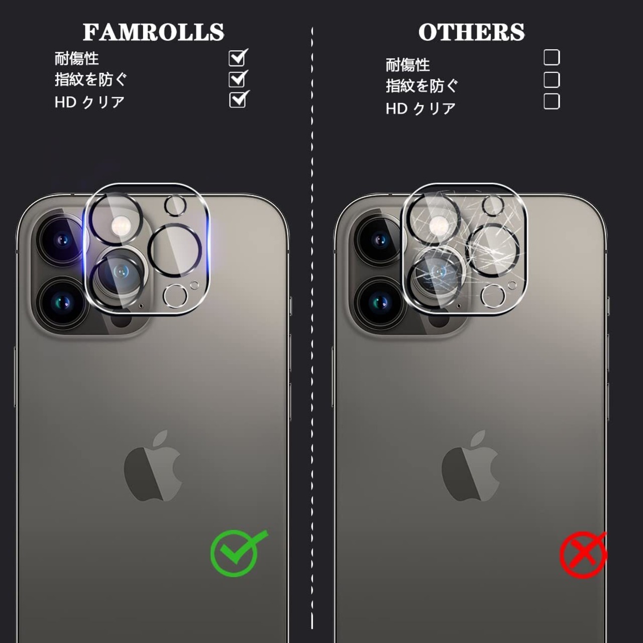 【2枚セット】 対応 iPhone 15 Pro / iPhone 15 Pro Max カメラフィルム アイフォン15プロ / アイフォン15プロマックス カメラ保護カバー (2枚) 【日本製素材旭硝子製】 用 iPhone15Pro / iPhone15promax レンズフィルム 強化カメラ保護フィルム 黒縁取り 露出オーバー防止 全面吸着 高透過率、硬度9H、3D Touch対応、飛散防止、指紋・汚れ防止、気泡ゼロ、ラウンドエッジ加工【FAMROLLS正規品】