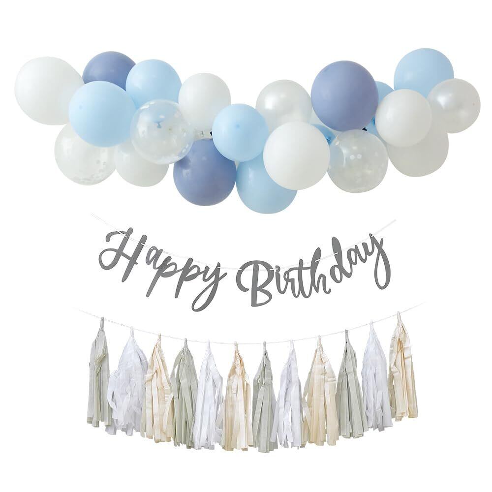 regalo 誕生日 バルーン 飾り付け 飾り バースデー デコレーション 風船 パーティー お祝い 1歳 2歳 装飾 レターバナー バルーンガーランド (飾り付けセット, スカイブルーN)