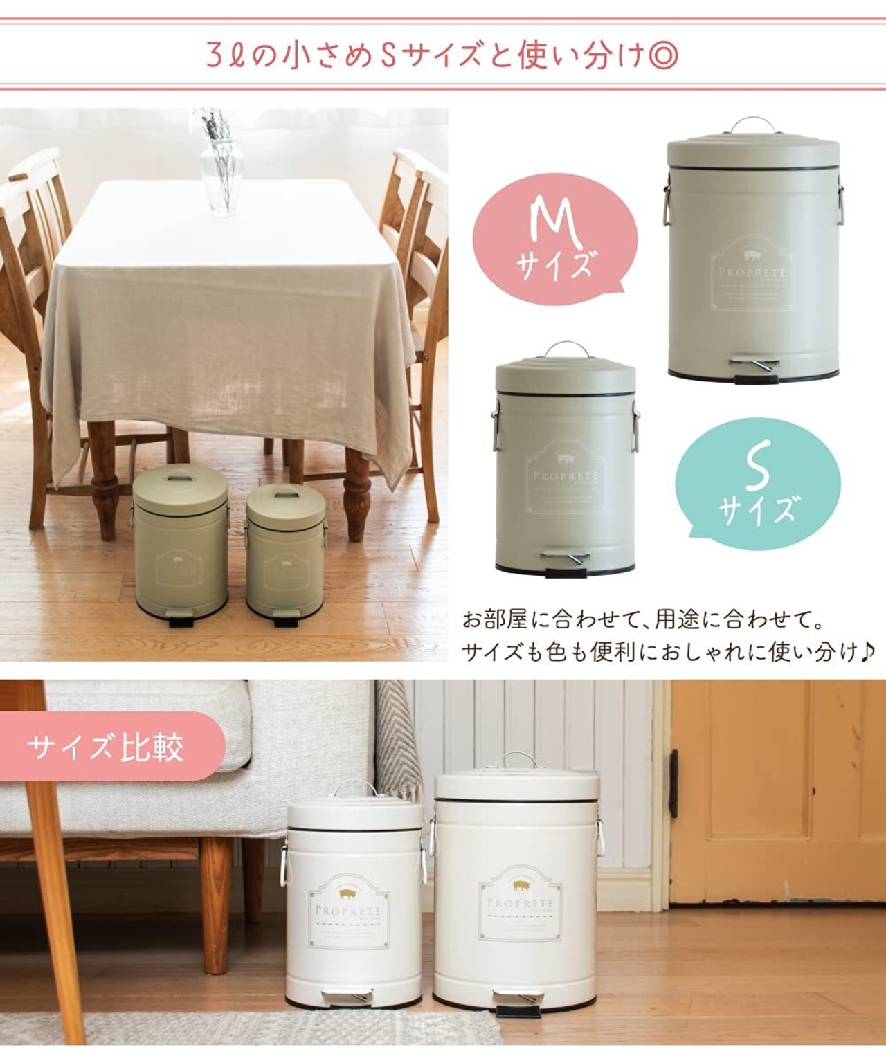 丸いボディとナチュラルなカラー!とってもかわいらしく、お部屋の中でインテリアとして置いて使えるゴミ箱です。