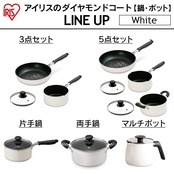アイリスオーヤマ 両手鍋 24㎝ 鍋 蓋つき ガス火/IH対応 ガラス蓋付き ダイヤモンドコート 長持ち こびりつきにくい お手入れ簡単 ホワイト DIS-P24
