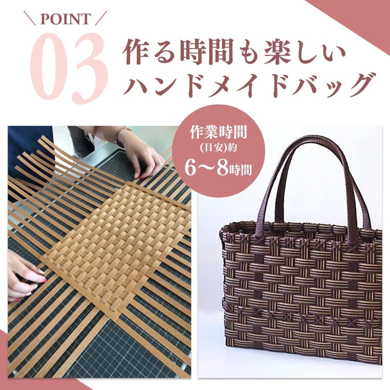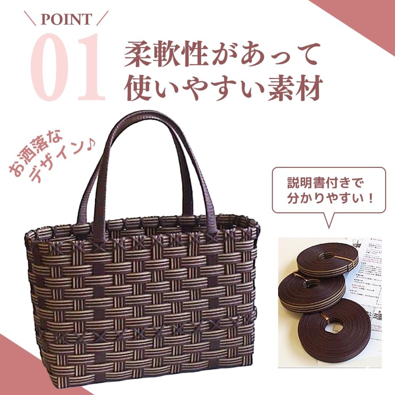紙バンド手芸用ホビーテープ トライアルキット ストライプバッグキット 茶系 少し大き目お買い物バッグ