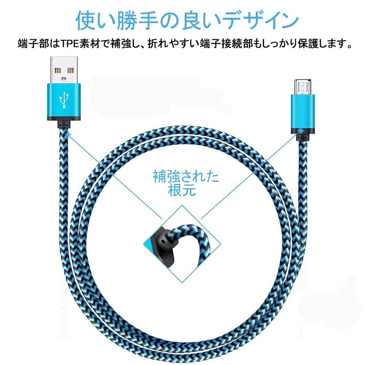 [ミリタリーグレードの耐久性]このマイクロusbケーブルは10,000回の曲げテストを合格し、且つ特殊なSR設計でケーブルのコネクタが他のよりもっと丈夫になります。柔軟性と耐久性を兼ね備えている高耐久ナイロン素材を採用し、より強い保護を提供します。何十年を経っても使えます。