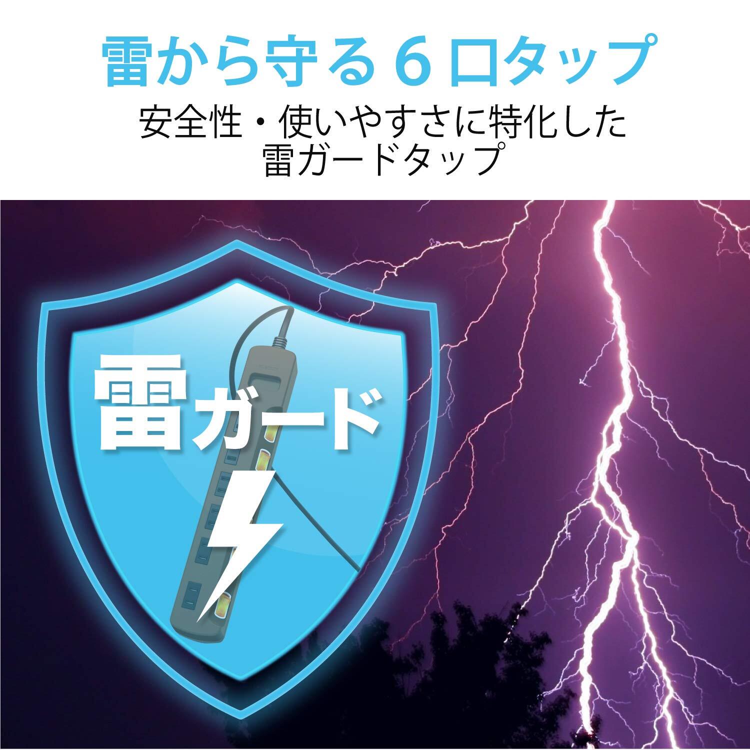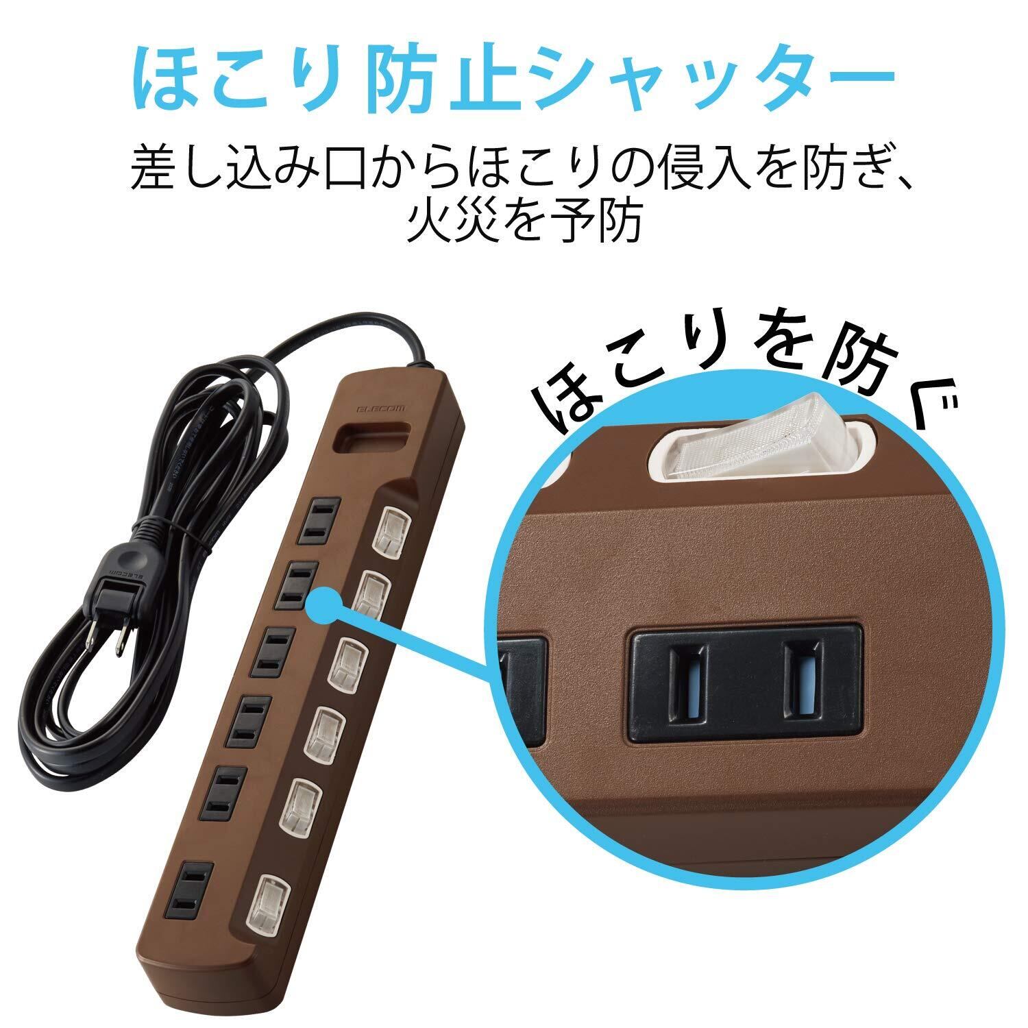 エレコム 電源タップ コンセント 雷ガード 個別スイッチ ほこりシャッター付 6個口 3m ブラウン T-K6A-2630BR