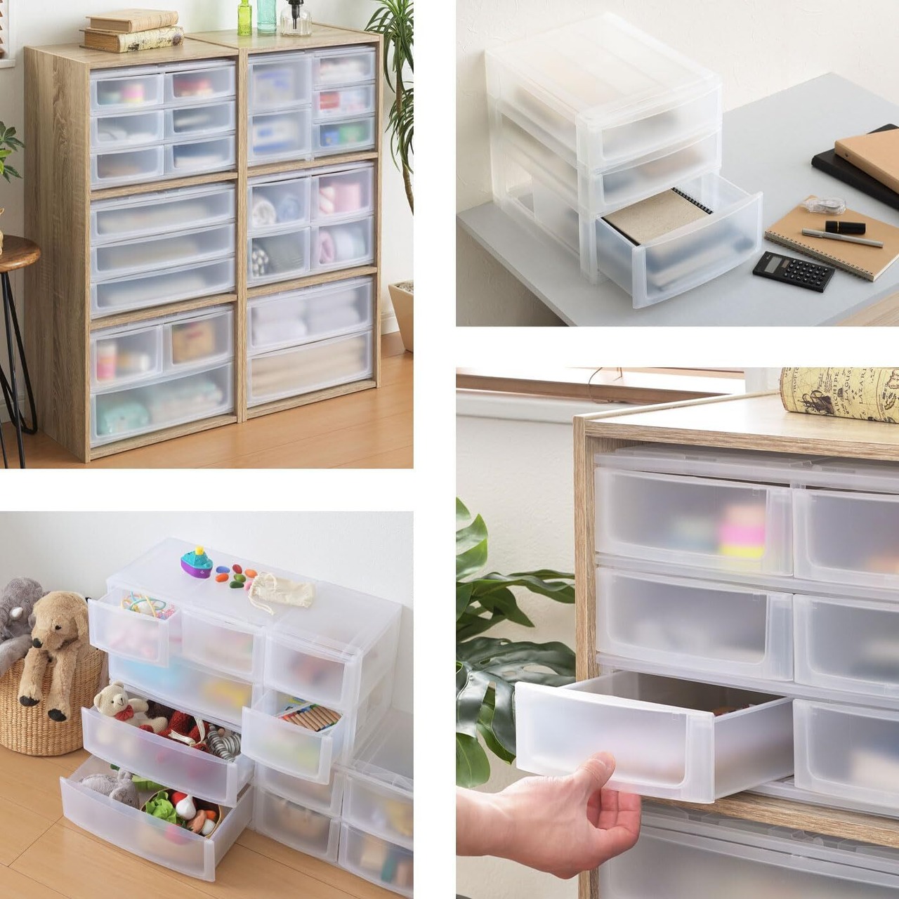 サンカ ポスデコ カラーボックスにピッタリフィット 引き出し収納ボックス ハーフ 浅3段 クリア ずれを防ぐラバーストッパー 重ねて使える スタッキングチェスト ロック機構 日本製 カラーボックス 収納ケース 小物 衣装 ボックス (幅19.5x奥行26.5x高さ26.5cm) NpdA5-a3CL