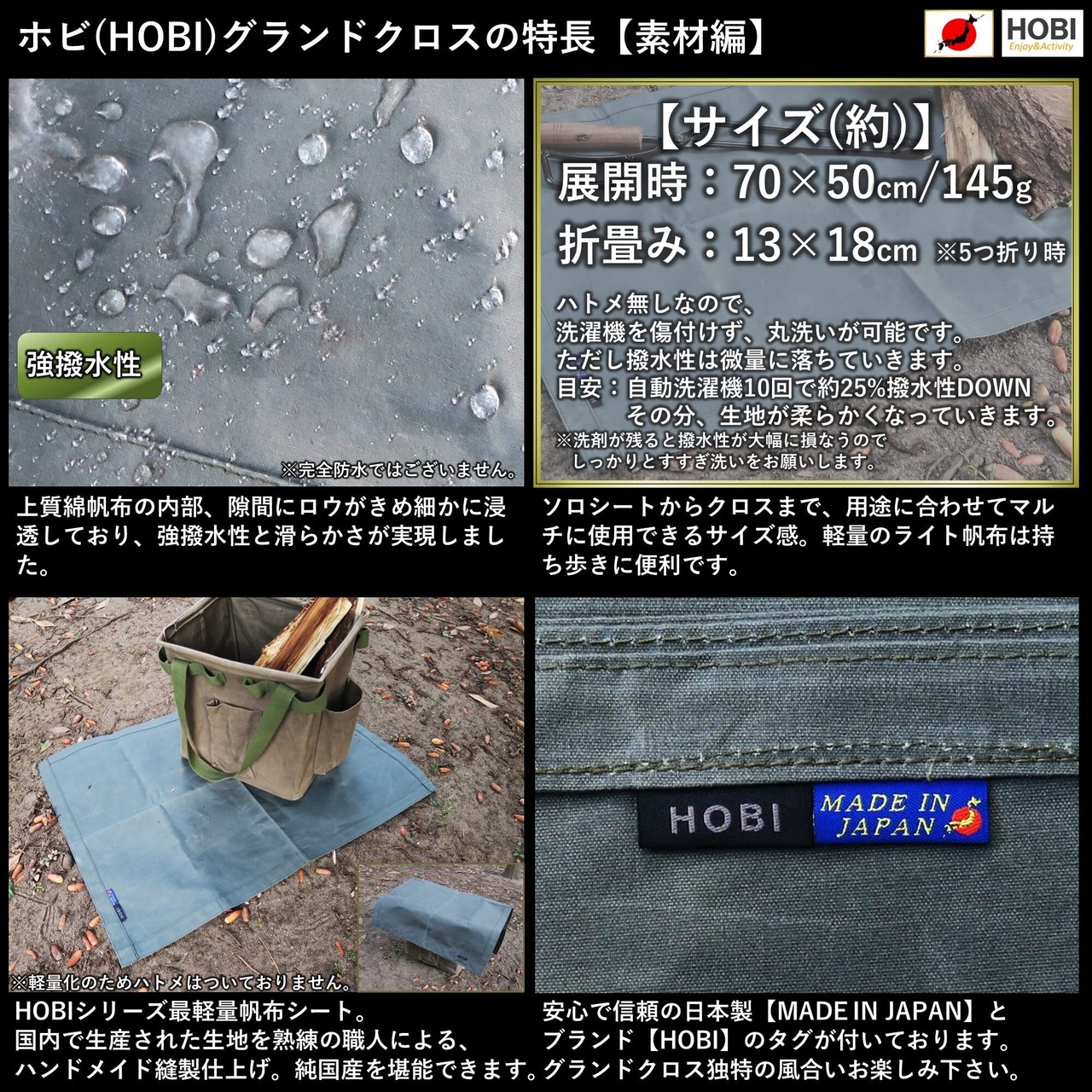 HOBI グランドクロス 70×50cm【日本製】ソロ グランドシート 極軽上質帆布 撥水パラフィン加工 [無骨でタフ] 軽量 マルチシート キャンプ ミニ マット 軍幕 ブラックオリーブ [MADE IN JAPAN]