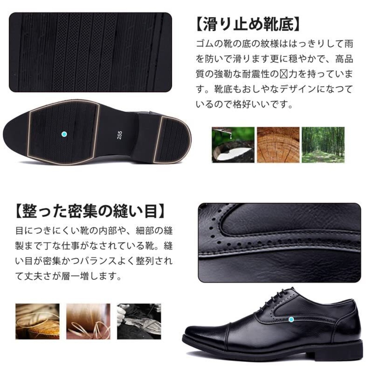 【防水&防滑&軽量&防臭加工】抗菌防臭、耐久防滑、軽量疲れづらい。雨天でも履いて頂ける防水革靴です。疲れない革靴や痛くならない革靴である為一日歩くビジネスマンの最強の味方ともいえる、長時間立っても、長距離歩いても足が疲れにくく、履き心地が最善です。※しかし完全防水ではありません。