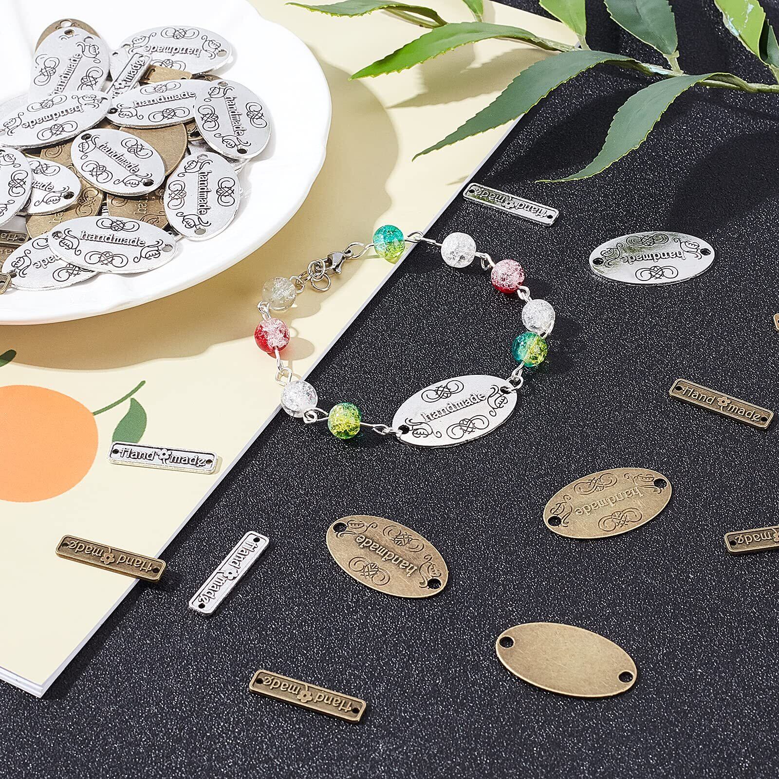 [PH PandaHall] タグ チャーム メタルチャーム 刻印タグ 88個セット 刻印プレート 長方形 楕円形 2色 アクセサリーパーツ アンティーク 手芸 ピアス ブレスレット ネックレス 手作り用品 ハンドメイド素材 ジュエリー用
