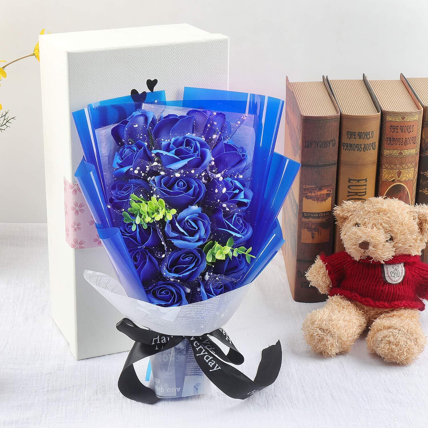 FAUHAL 純潔な色、海のような青いバラ ソープフラワー 青 花 造花 花束プレゼント 青い薔薇 枯れない花 石鹸花 母の日のギフト 誕生日プレゼント女性 人気 昇進 、転居、還暦、元旦、送別会、お見舞い、結婚や出産祝い等色々な場所で活躍できます (青い(17輪))