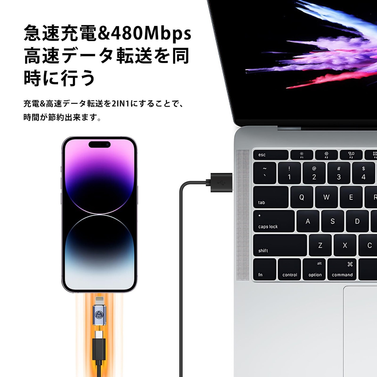 【480Mbps高速データ転送&出力調整で端末機を保護】急速充電するとともに、480Mbpsの高速データ転送を行うことが可能です。(ご注意:高速データ転送≠OTG対応なので、Type-Cイヤフォンの変換プラグとして使えません) i-Phoneとi-Padの定額入力は異なるため、本製品は端末と通信して一番最適な出力に調整することによって、大切な端末を守ることが可能です。"