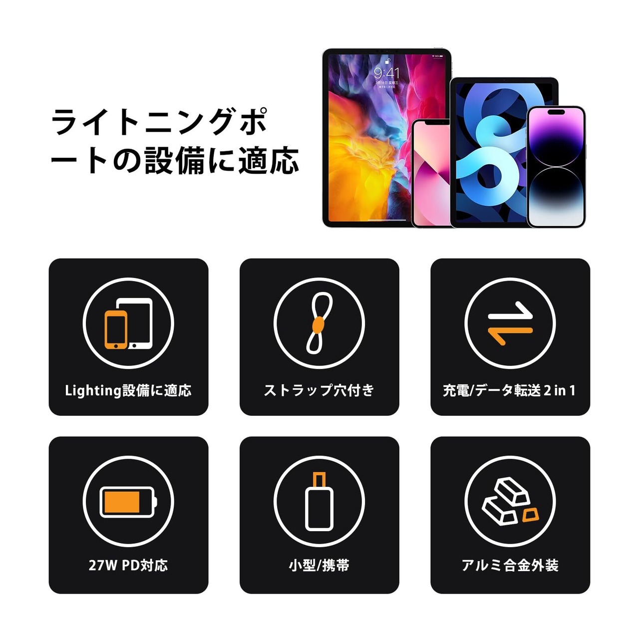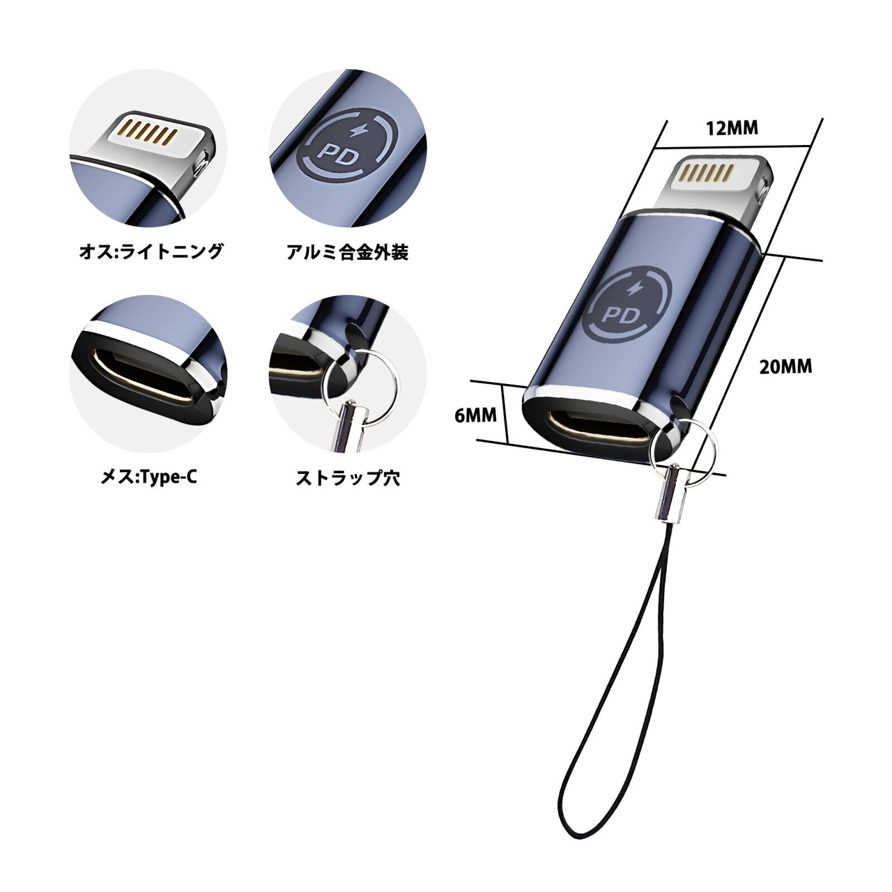 【小型&携帯】本製品は20㎜の長さでわずか5gです。現在電子製品はType-C ポートに統一しており、Type-C to Lighting 変換アダプタを持てば、ケーブル一本ですべての製品充電に対応出来るようになります。ストラップも付いており、紛失防止に役立ちます。出張、旅行等の外出にぴったりのグッズです。ライトニングポートの製品をお持ちの方にはお勧めです。 "