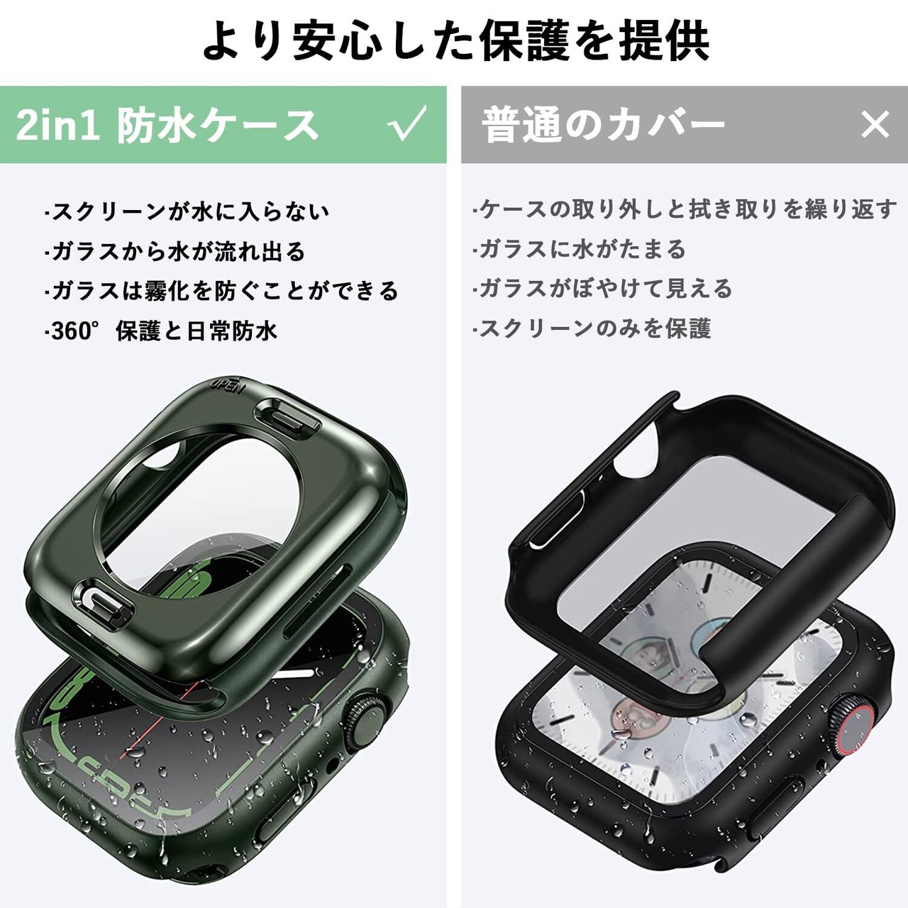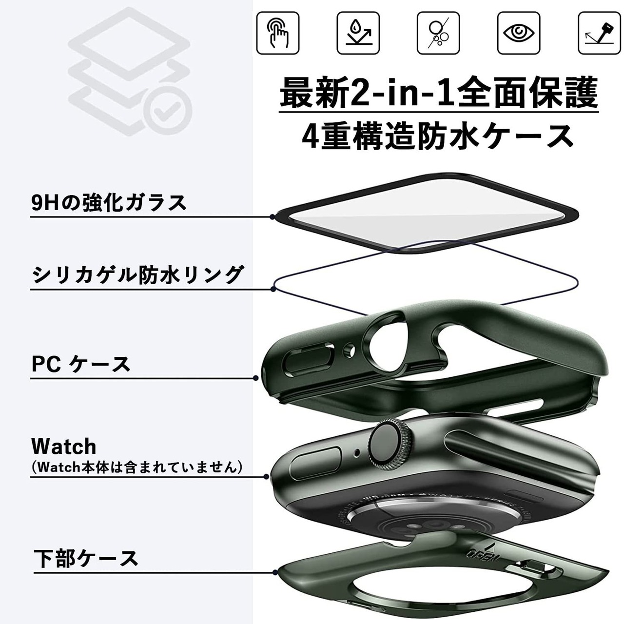 [Sunhel] コンパチブル Apple Watch アップルウォッチ ケース 2-in-1 防水ケース 対応 AppleWatch SE/SE2 Series 10/9/8/7/6/5/4 全面保護カバー 耐衝撃 軽量 脱着簡単(グリーン,45mm)