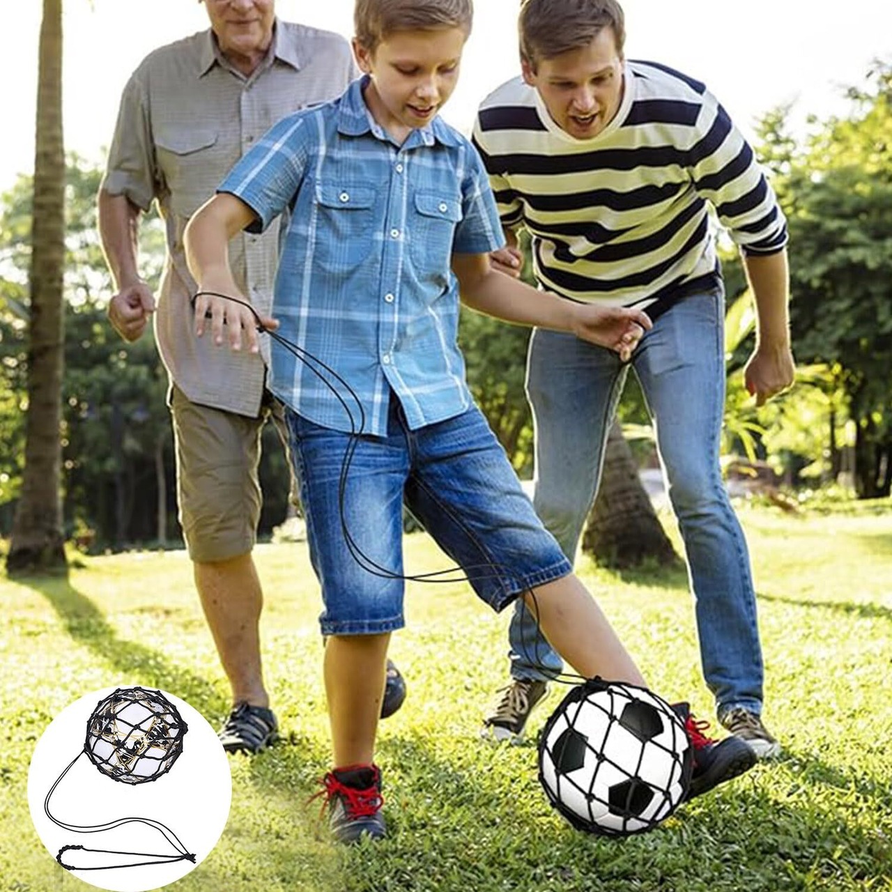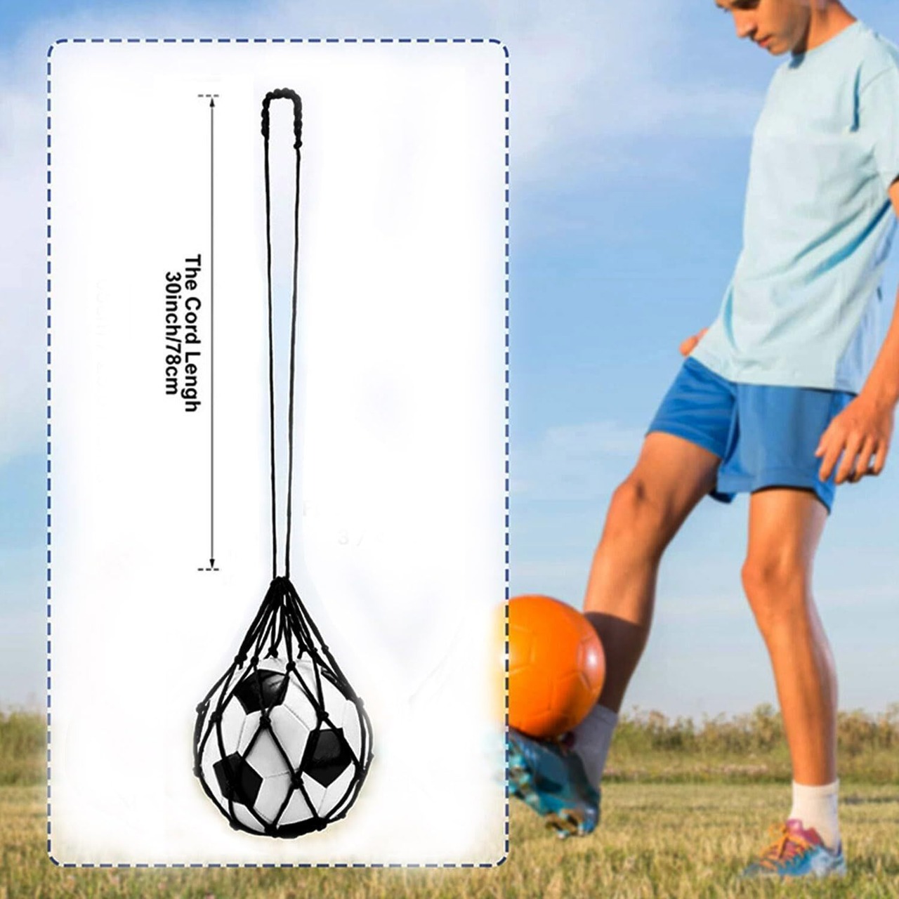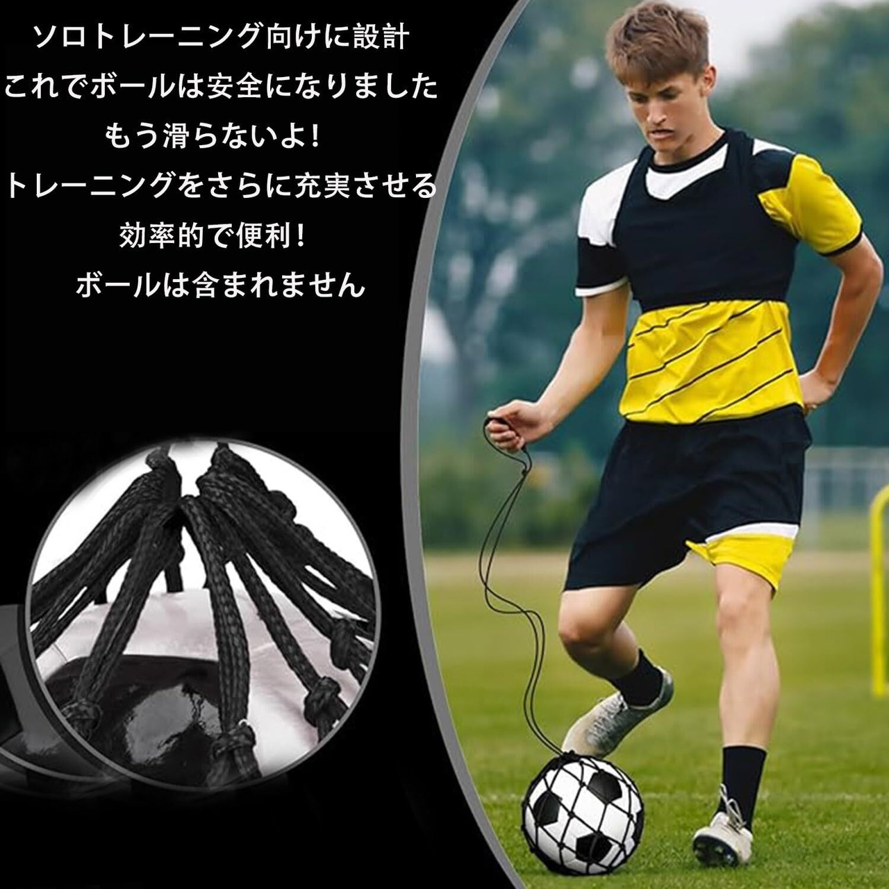 【ソロ練習に最適】 - 初心者でも熟練したプレーヤーでも、この多目的ネットバッグは、キック、シュート、パス、ドリブルのスキルを習得するための理想的なトレーニングツールです。サポートは必要ありません。