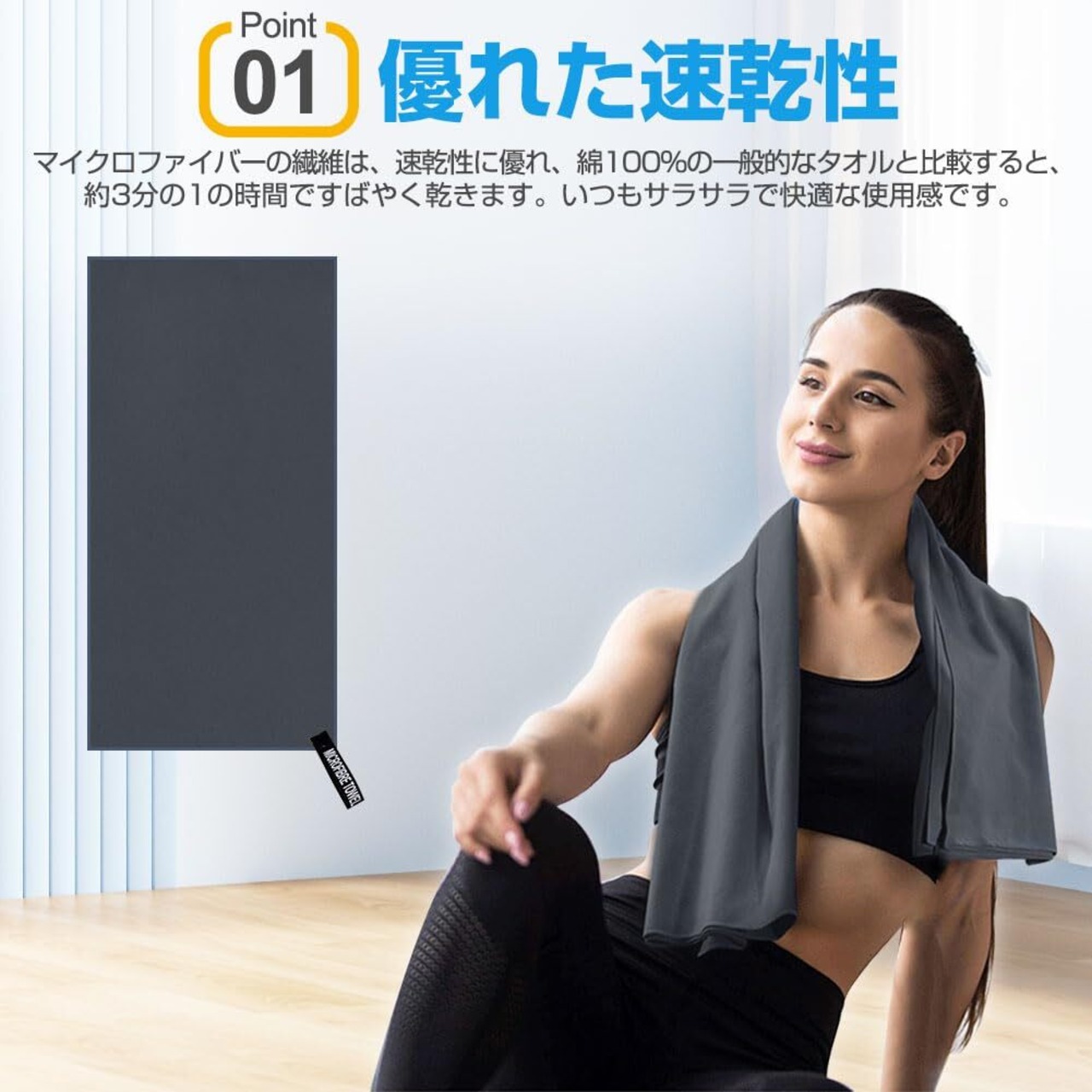 【超吸水・速乾・抗菌】見た目が薄くても吸水性に優れ、タオル専用のふわふわなマイクロファイバー繊維を使った吸水速乾タオル。極細繊維で肌触りもシルキーです。抜群の吸収力のうえ、軽くて肌触りも良く、耐久性も優れています。カビを防ぎ抗菌処理を施しました、汗を吸っても安心、濡らしたタオルに雑菌が繁殖するのも防いでくれます。