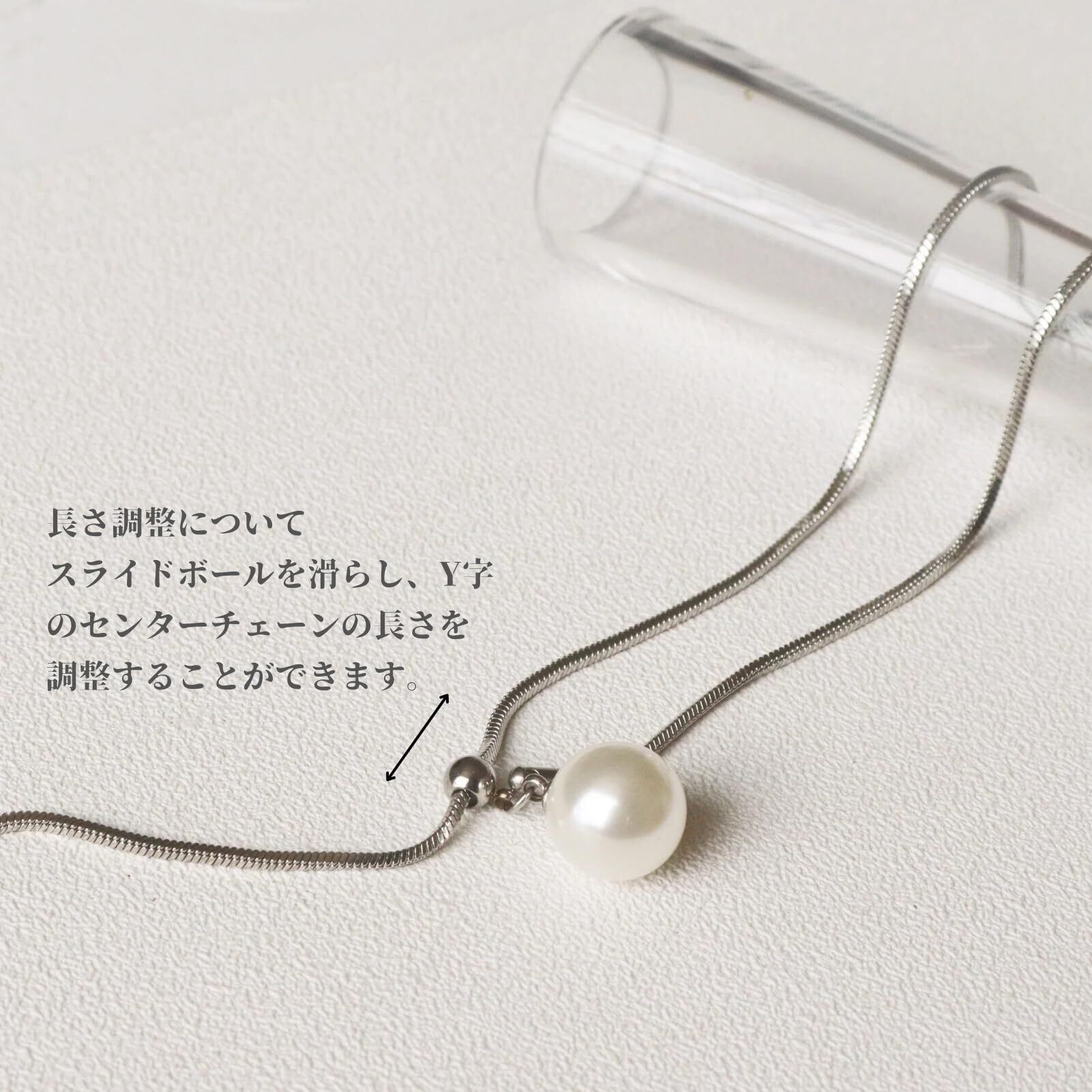 サイズ: チェーン全長:約75cm(アジャスター含む) ※Y字チェーンの長さ調整可能 パール:直径 約1.2cm