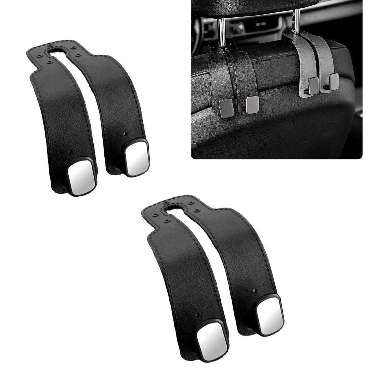 2個セット ヘッドレストフック 車用シートダブルフック取付け簡単 耐荷重強い 車用シートフック レザー金属製 耐荷重10kg 荷掛けフック 収納フック 2個セット (ブラック)