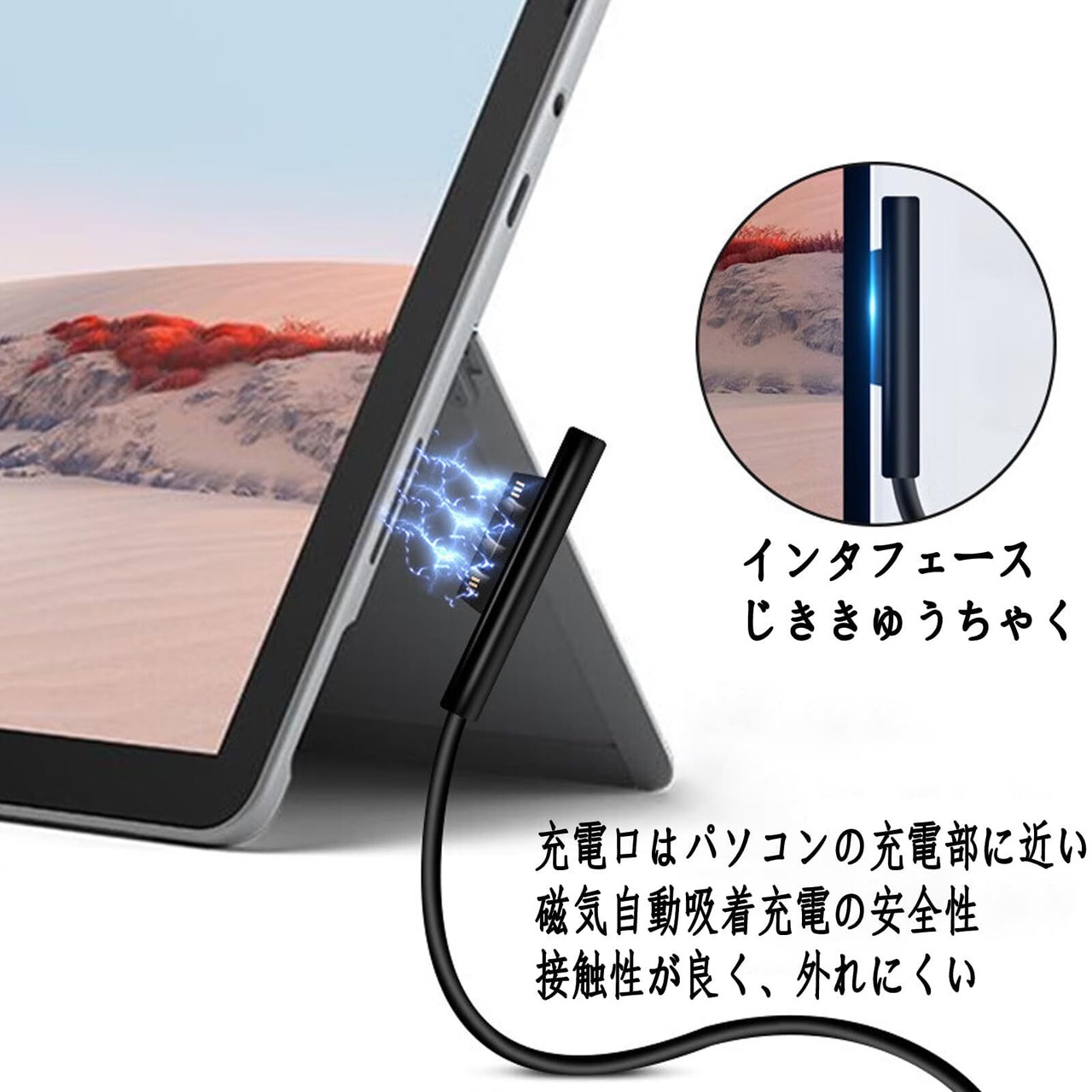 Surface Pro USB-C 充電ケーブル 15V PD充電対応 Type C Microsoft Surface Pro 6/ Pro 5/ Pro 4/ Pro 3/ Surface Go/Surface Laptop 対応 USB-C 充電 1.5M (ブラック)