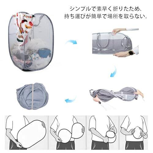 【多機能】このメッシュランドリーバスケットは衣類、おもちゃ、スポーツ用品などに適しており、子供、ティーンエイジャー、大人にとって最適です。リビングルーム、ベッドルーム、バスルーム、子供部屋、大学寮、キャンプ、ホテル、旅行に最適です。