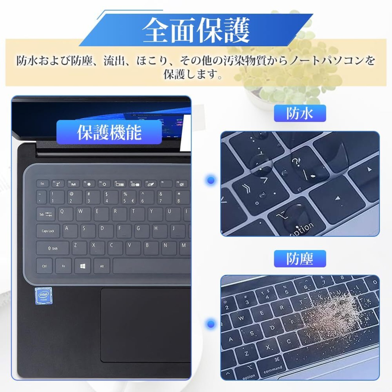 【全面保護】ホコリ、汚れ、指紋、水飛沫などから完璧に保護します。ホコリや汚れ、食べ物・飲み物の不意なこぼれなどからキーボードを安全に保護します。