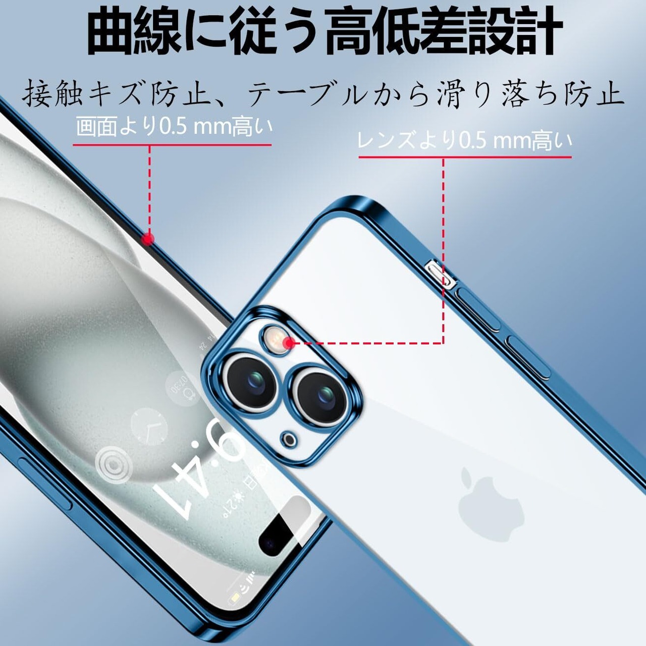iPhone15 ケース クリア カメラ保護 いphone15 スマホケース 薄型 TPU 軽量 変形防止 人気 スリム ソフト アイフォン 15 カバー 衝撃吸収 ストラップホール付き(ブルー)