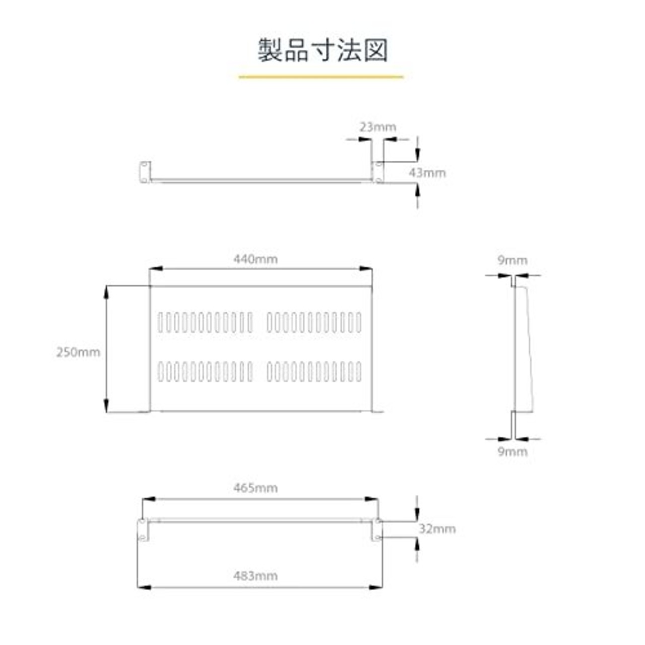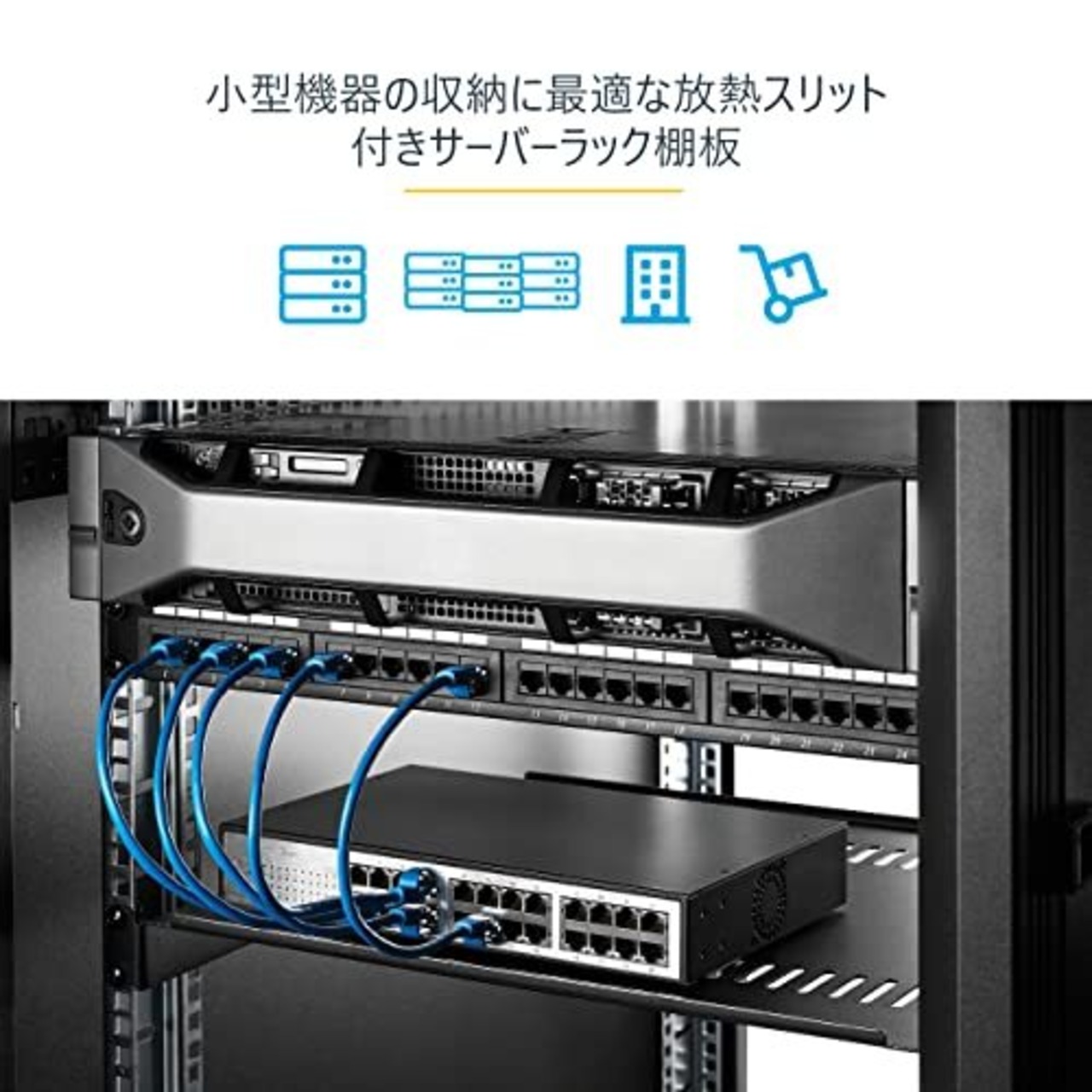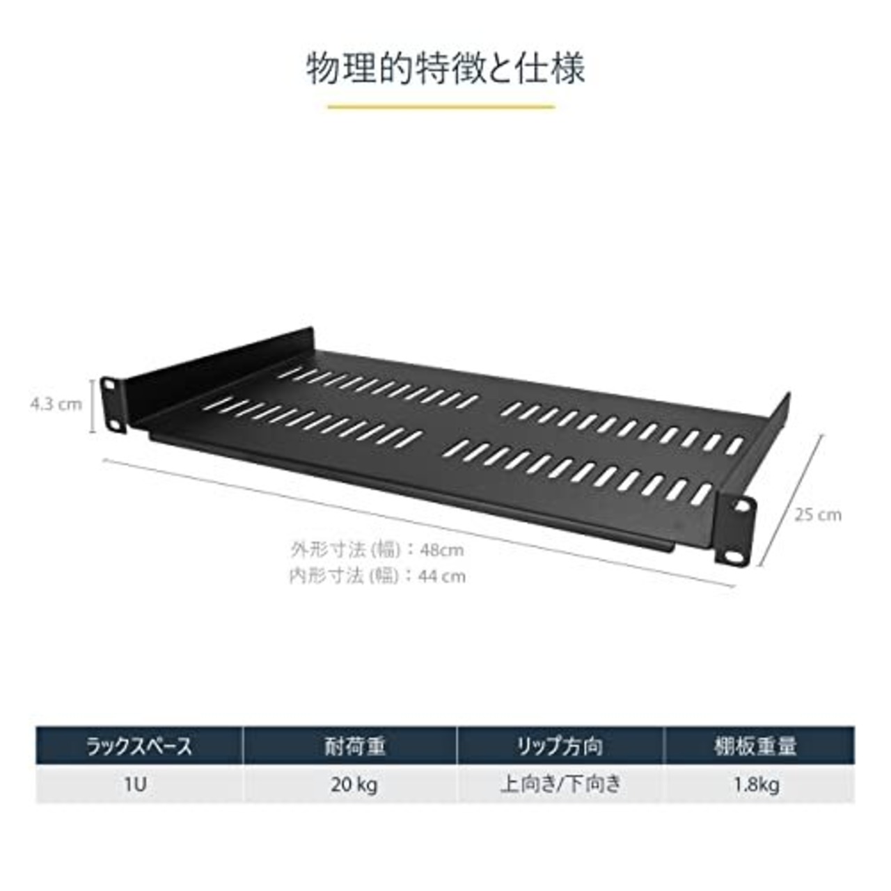 ユニバーサルフィット:19インチ型サーバーラック各種に対応する放熱スリット付き1U棚板。内部奥行25cm、各種データ機器、IT/ネットワーク装置、ラックマウント非対応の装置を収納
