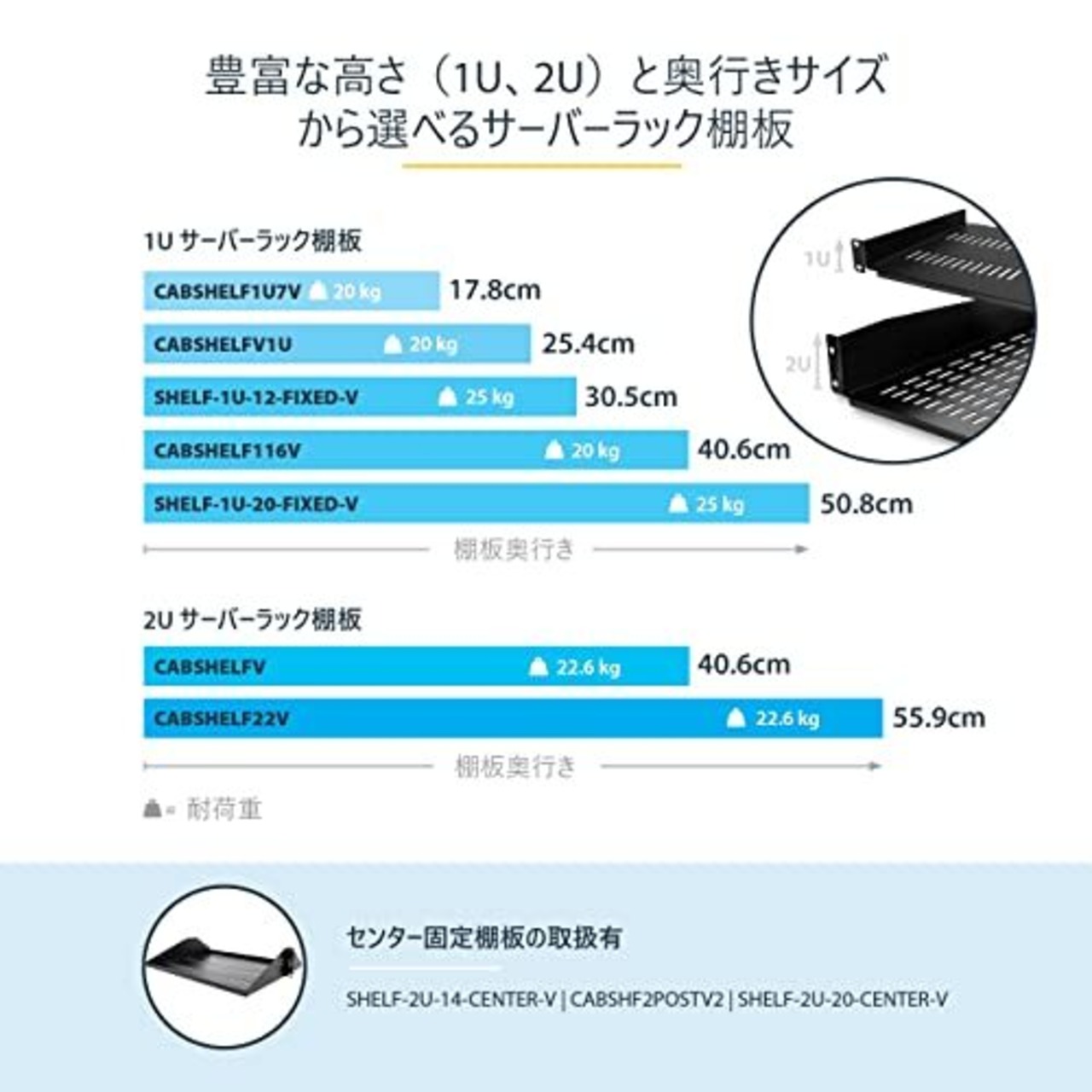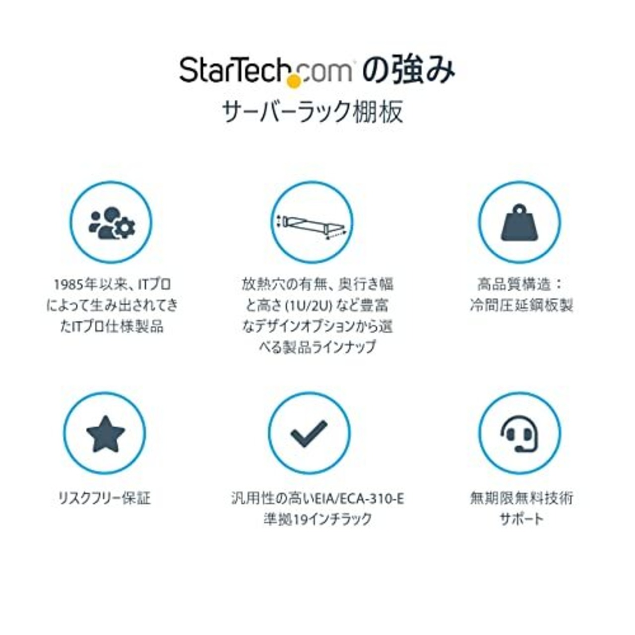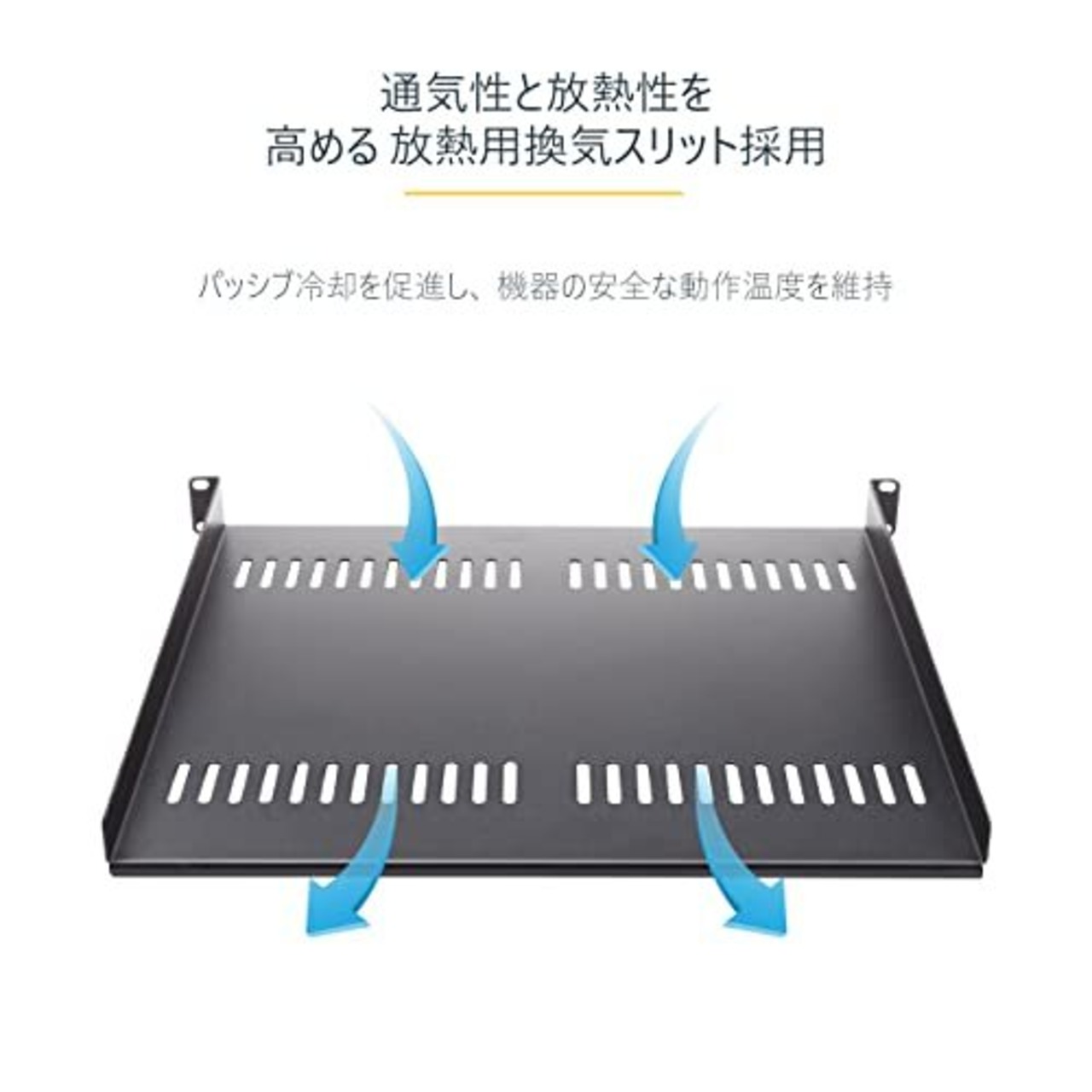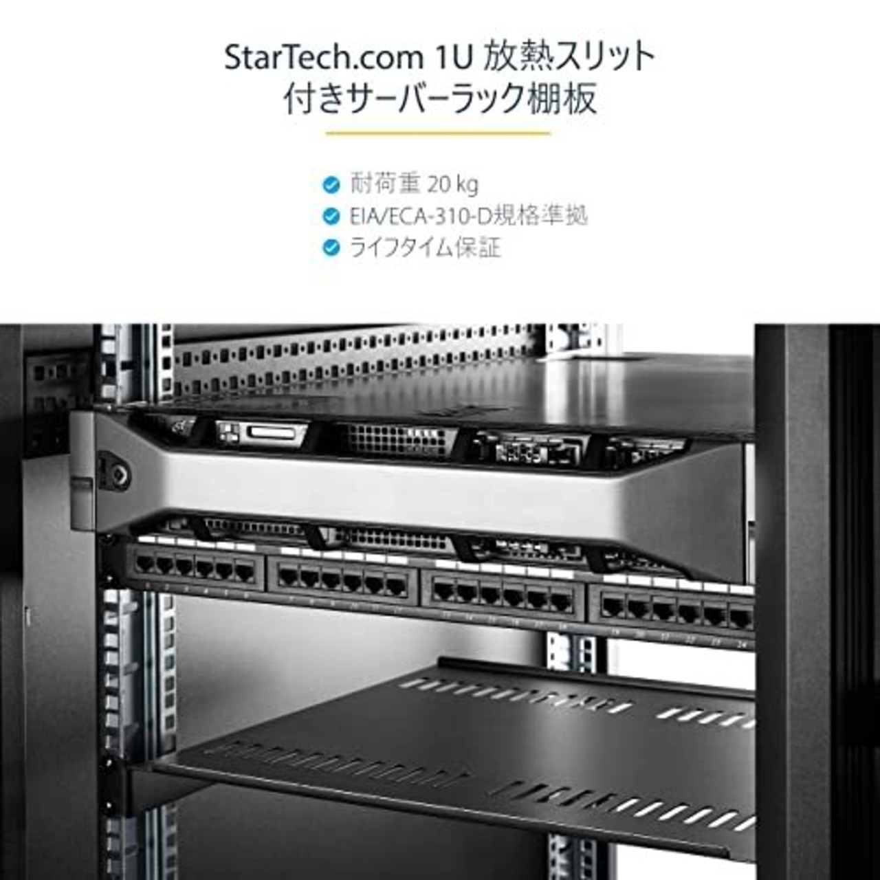 StarTech.com 1U サーバーラック棚板/19インチ装置ラック&キャビネット用放熱スリット付きカンチレバートレイ/高耐久性スチール/耐荷重20kg/奥行25cm ブラック CABSHELFV1U