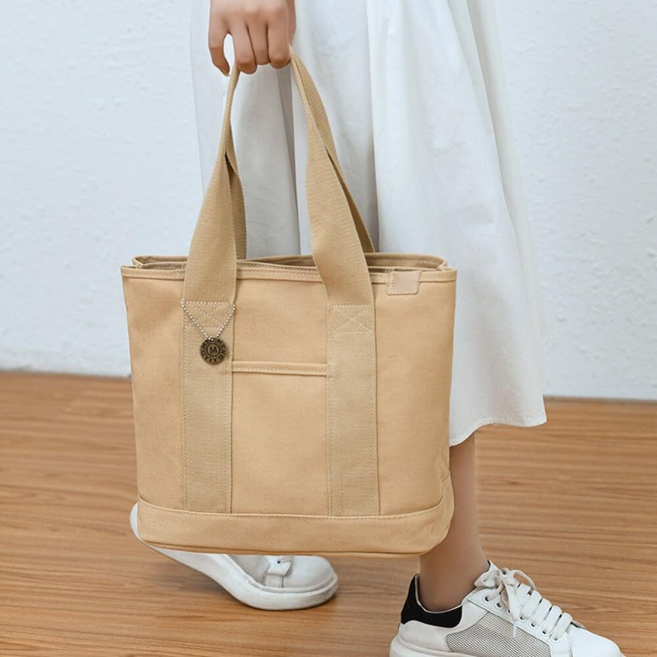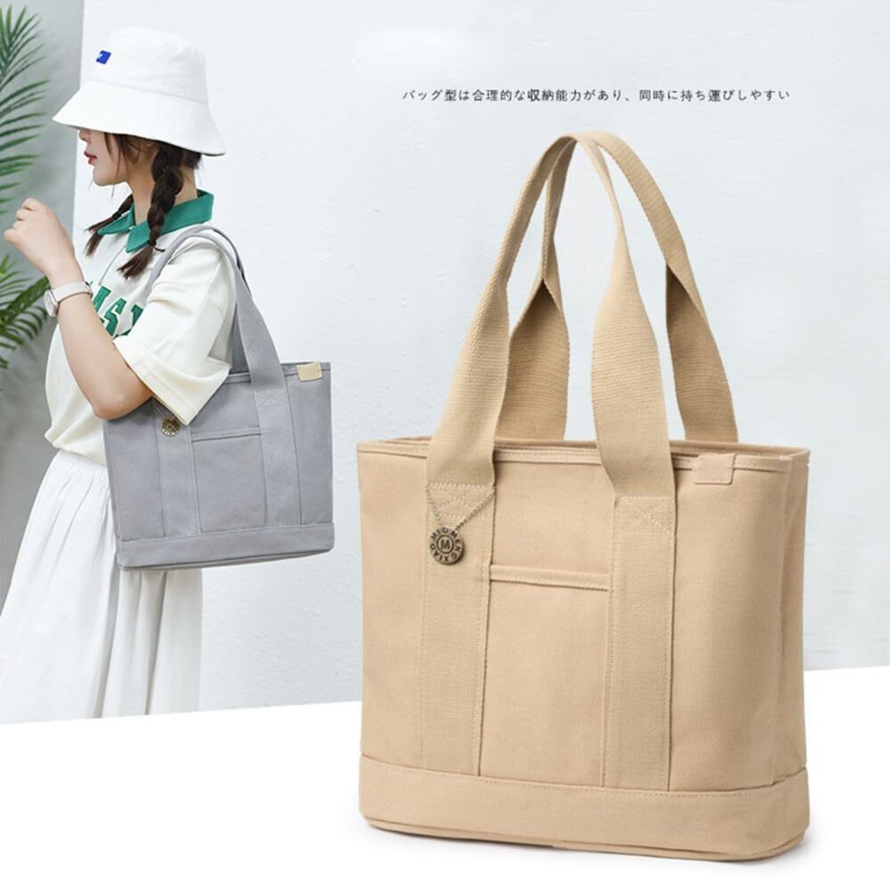 [Volsha] トートバック 仕切りトート キャンバス, A4 横 大容量 レディーストート キャンバス 無地 自立 キャンパストート帆布 通勤通学