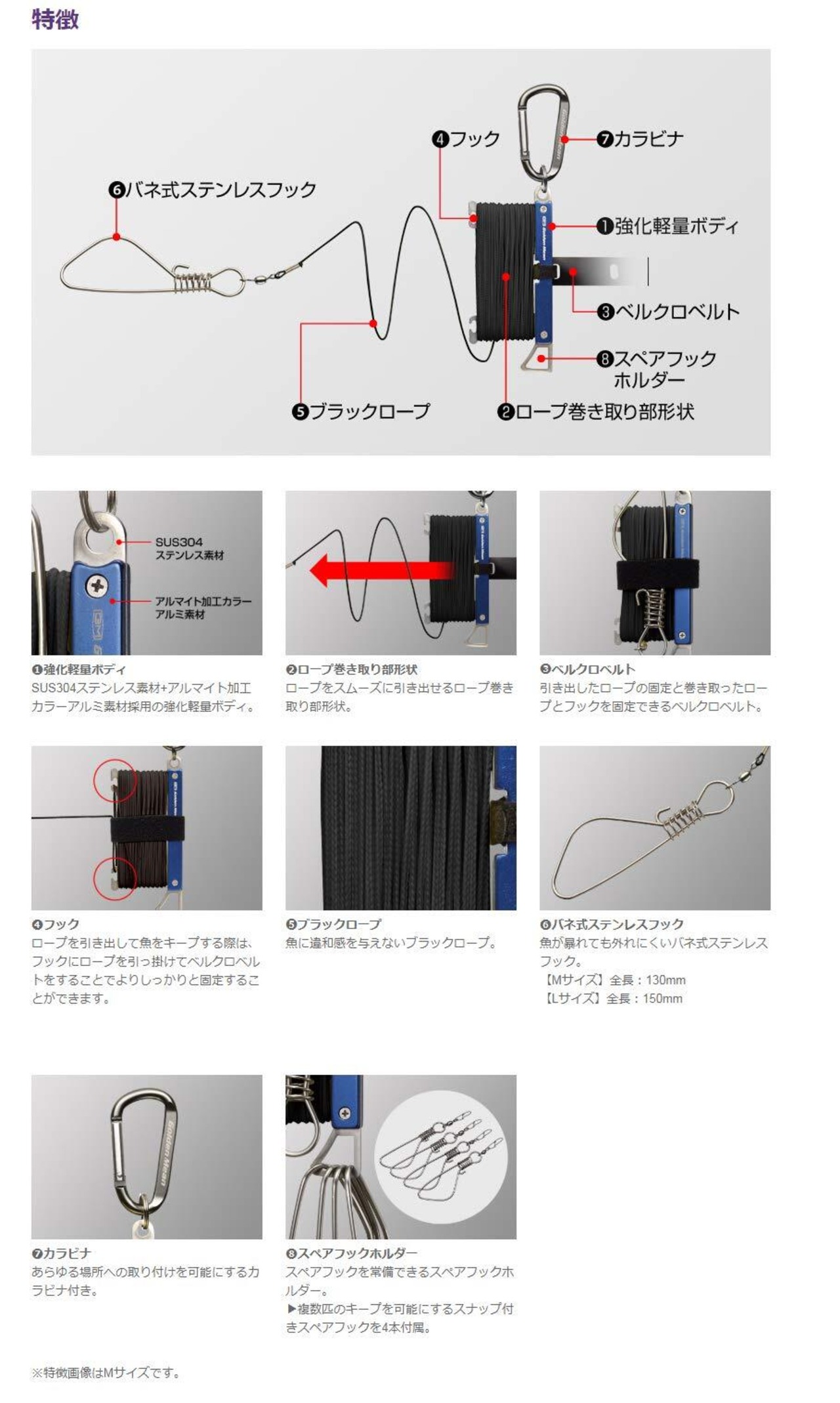 サイズ:L ロープ1.5φmm×15m/フック150mm×1本(スペアフック4本)