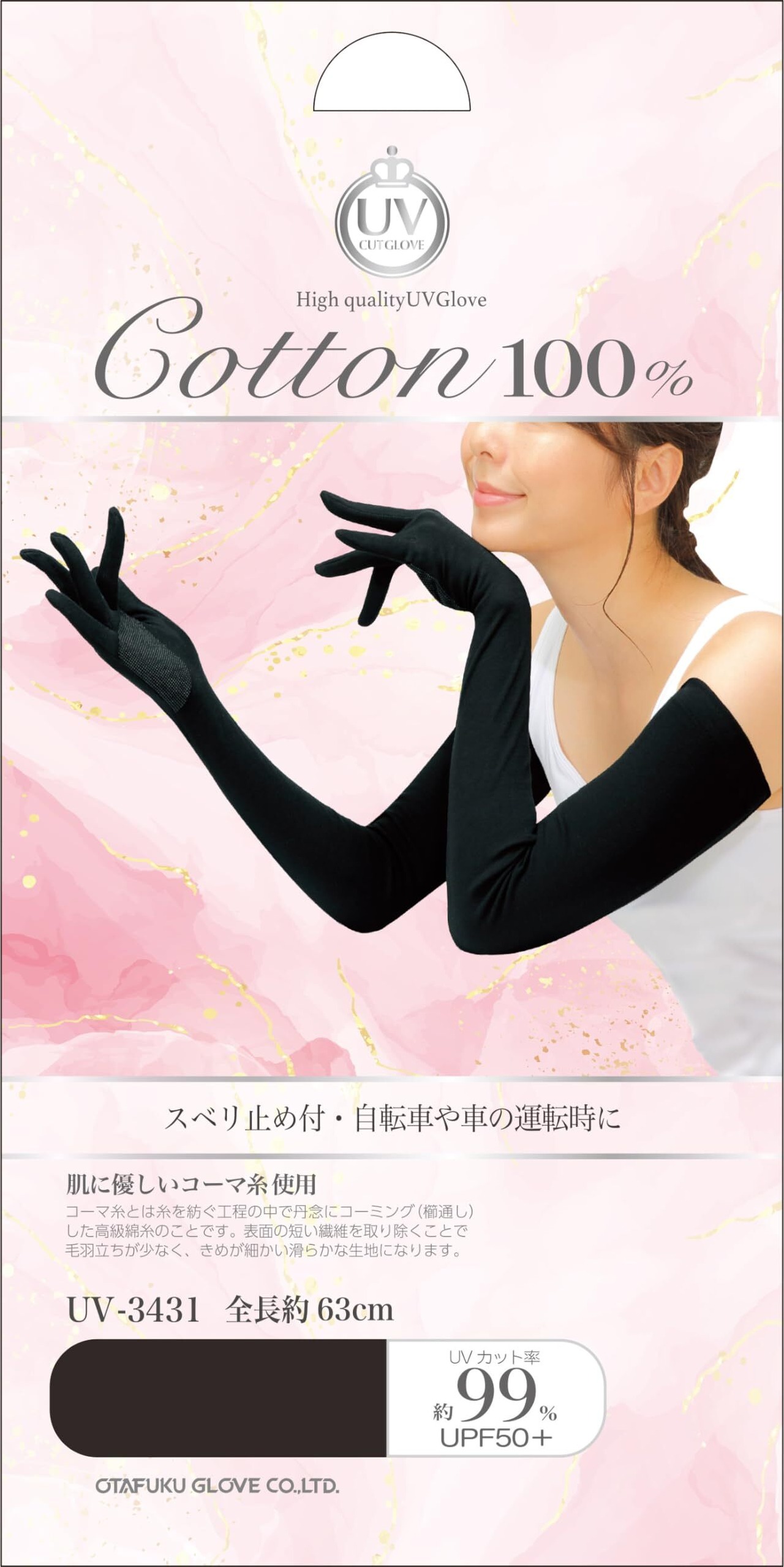 おたふく手袋(Otafuku Glove) 夏用アームカバー [コットン100% レディース用 スベリ止め付 ロング] UV-3431 ブラック フリーサイズ