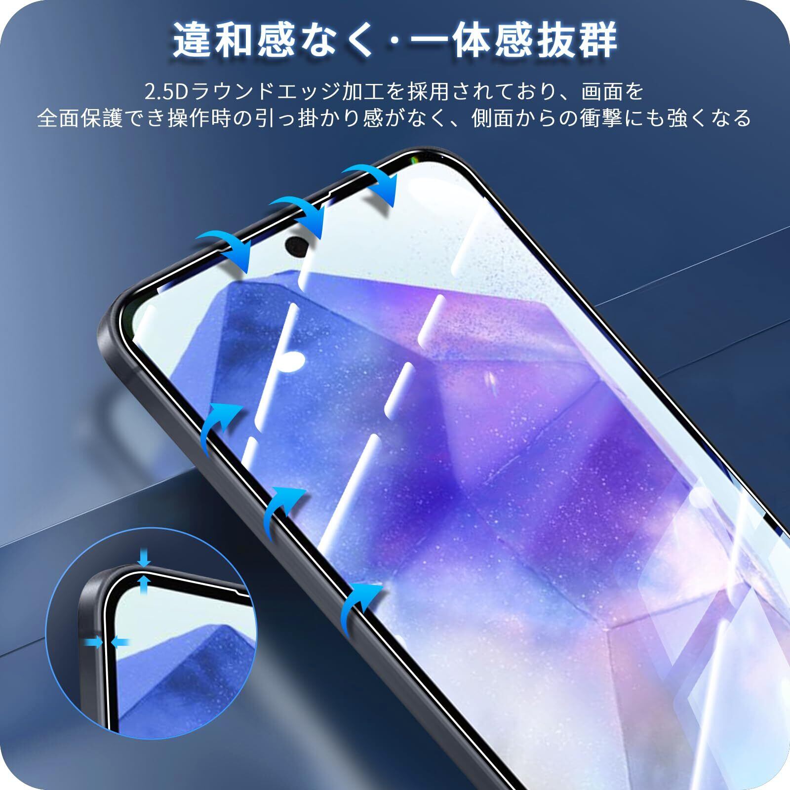 【対応機種】Galaxy A55 5G SC-53E/SCG27 に対応します。ご注意: ご購入前にお使いの携帯電話のモデルをご確認ください。【超お得な4枚セット!】 Galaxy A55 5g ガラスフィルム 2枚+カメラフィルム 2枚 。