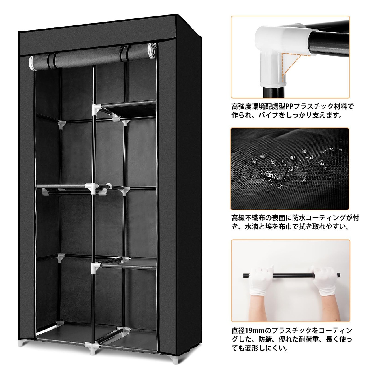 【組み立て簡単、女性一人でもOK】女性の方は一人でも簡単で楽に組み立てできます。説明書付属します、パイプを連結パーツで繋げて、カバーがラックに覆うだけ!組立式収納棚は強固に改良しました。防水の厚や通気性の良い不織布、強化プラスチックの接続口。