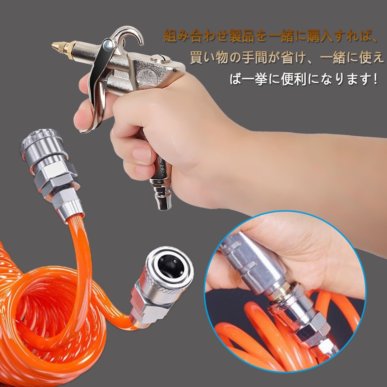 【エアダスターガンとエアーホースの組み合わせ】組み合わせ製品を一緒に購入すれば、買い物の手間が省け、一緒に使えば一挙に便利になります!脱着簡単ステンレス鋼なワンタッチソケット付きます。