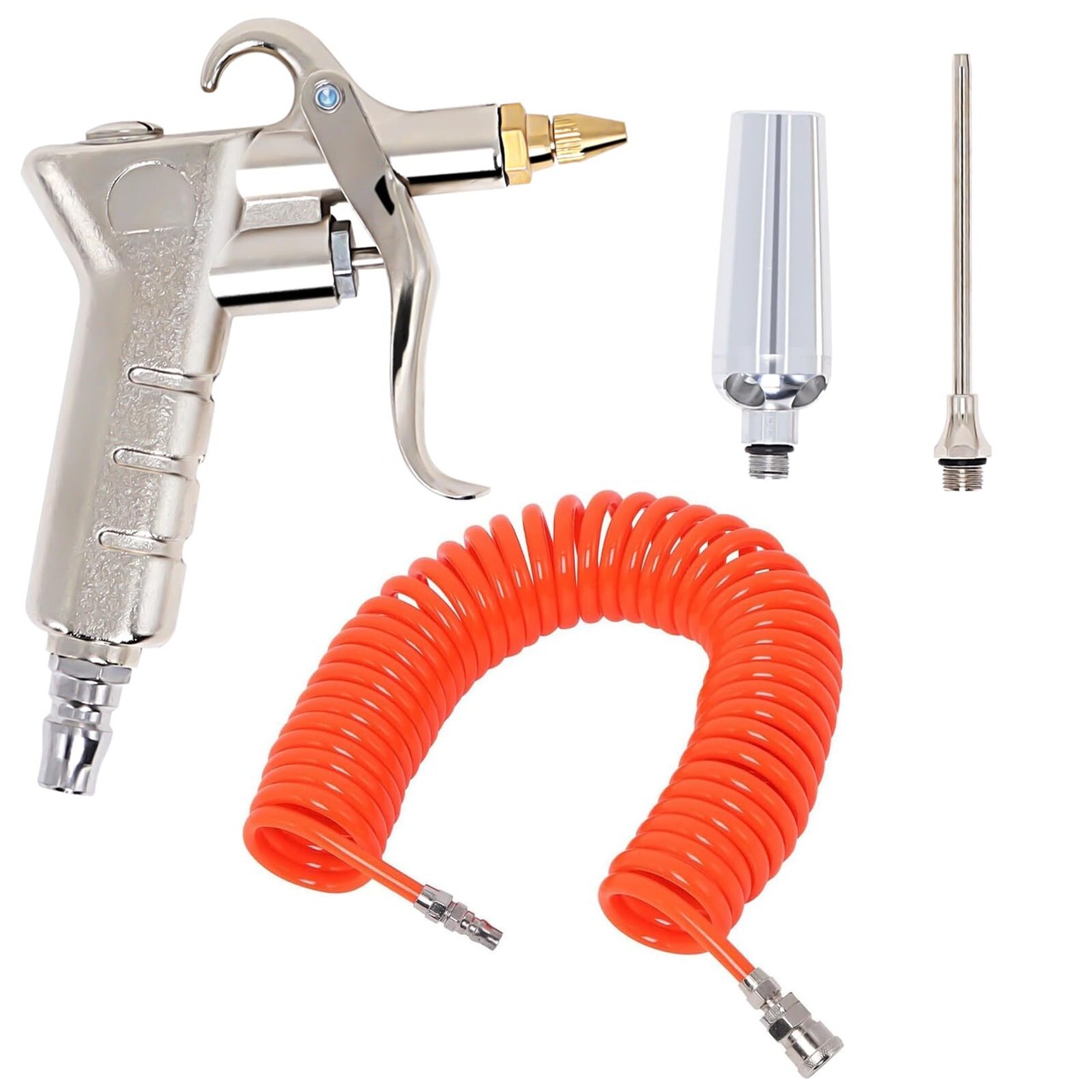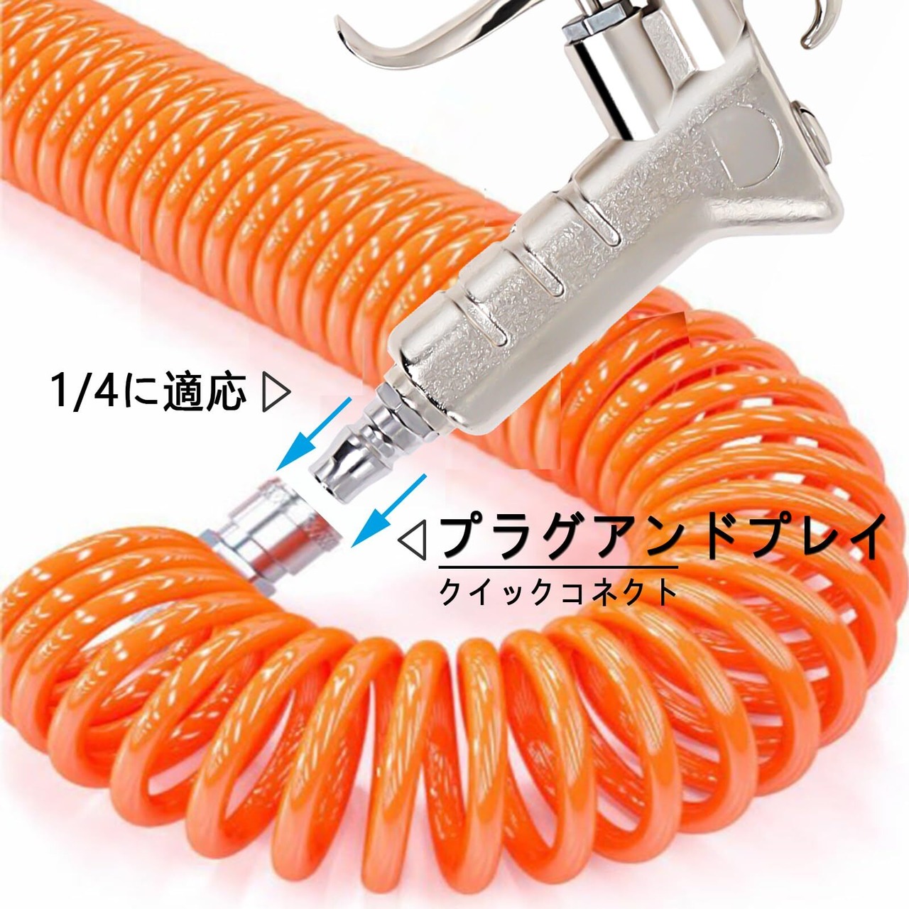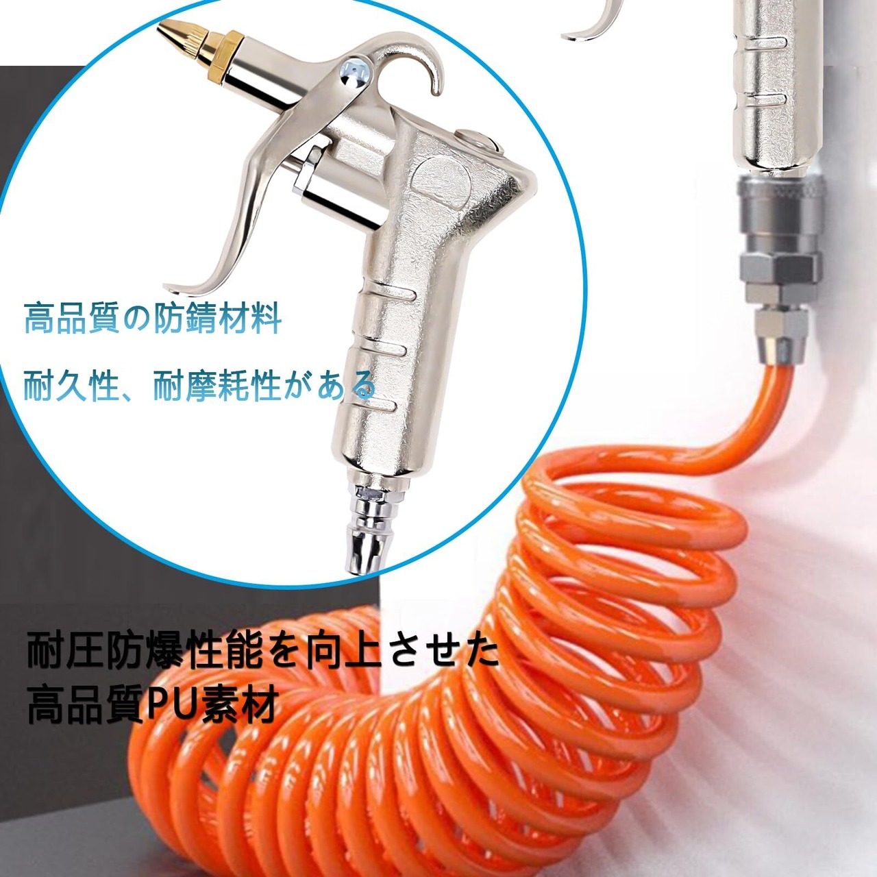 【高品質素材】エアブローガン:高エアブローガンは高品質の材料で作られ、緩んでいないまたは防錆です。耐久性、耐摩耗性があります。エアーホース:耐久性の高いPU素材の伸縮するバネ式エアーホースです。