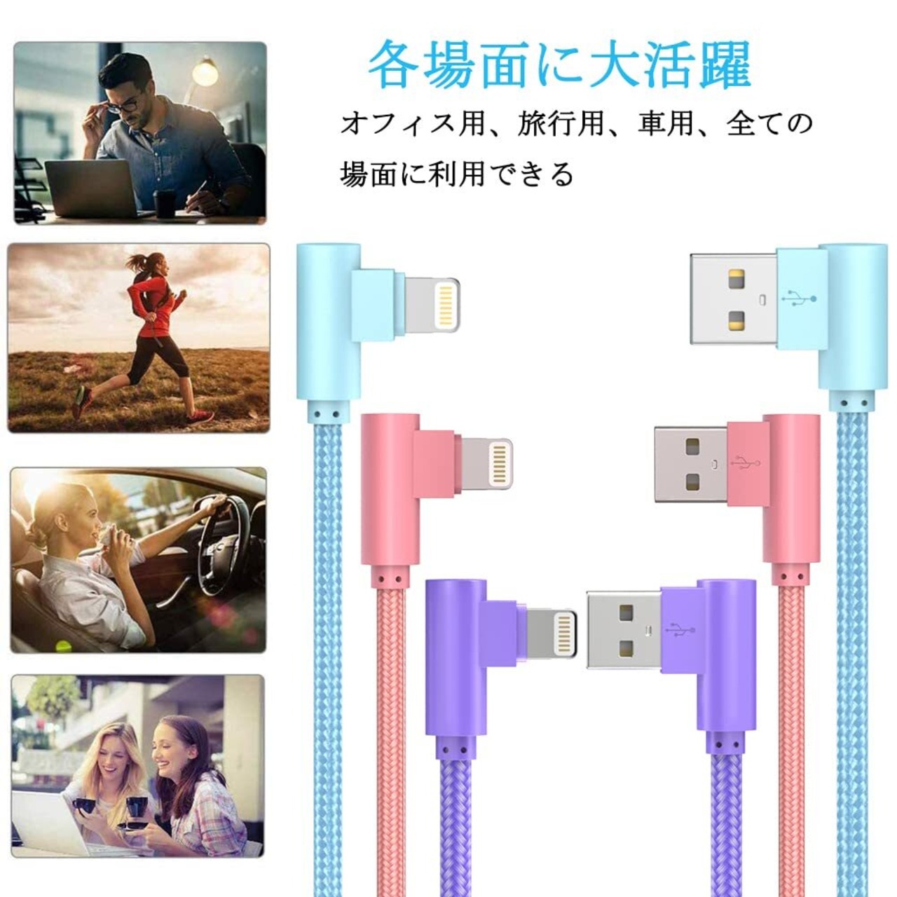 【便利性優れるlightning ケーブル】家や車載、オフィスでちょっと離れた距離で使用できる。いつでも適切な長さで快適に充電・同期。ロングタイプなら離れた場所で寝ながら操作もできますので、後部座席、寝室使用最適。3本あり、予備用などの各場合にケーブルを探す必要はない。